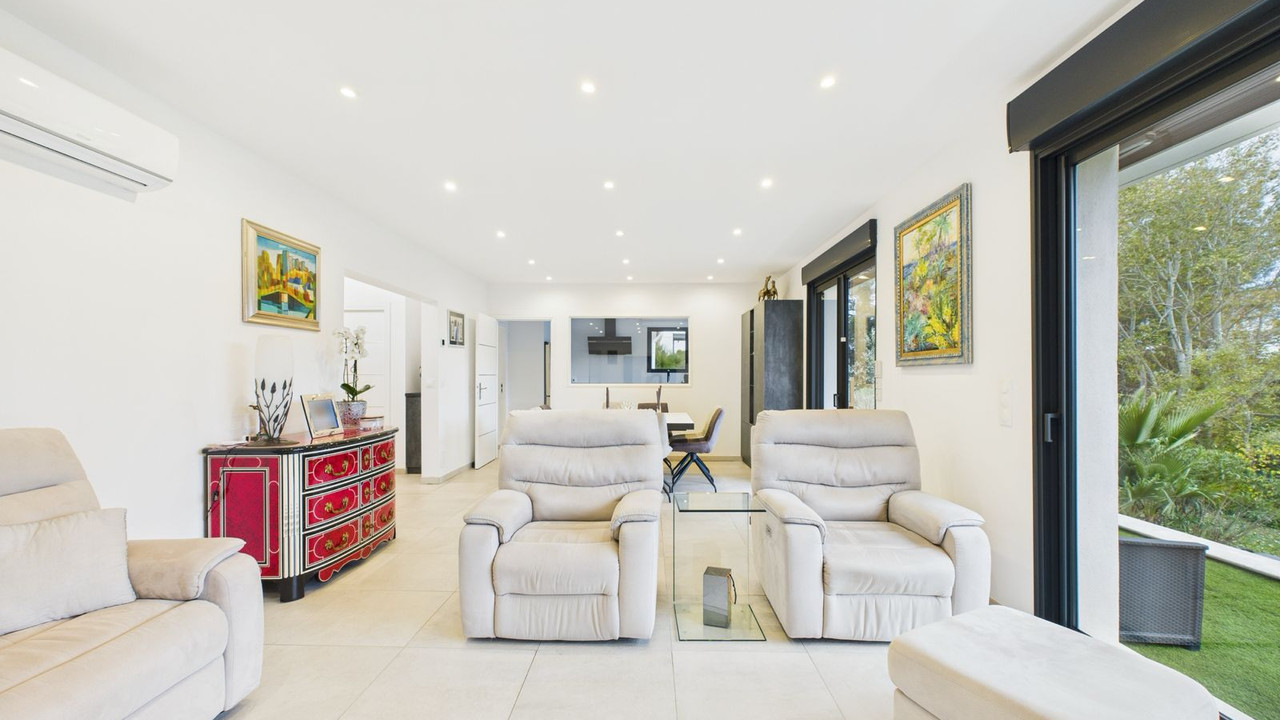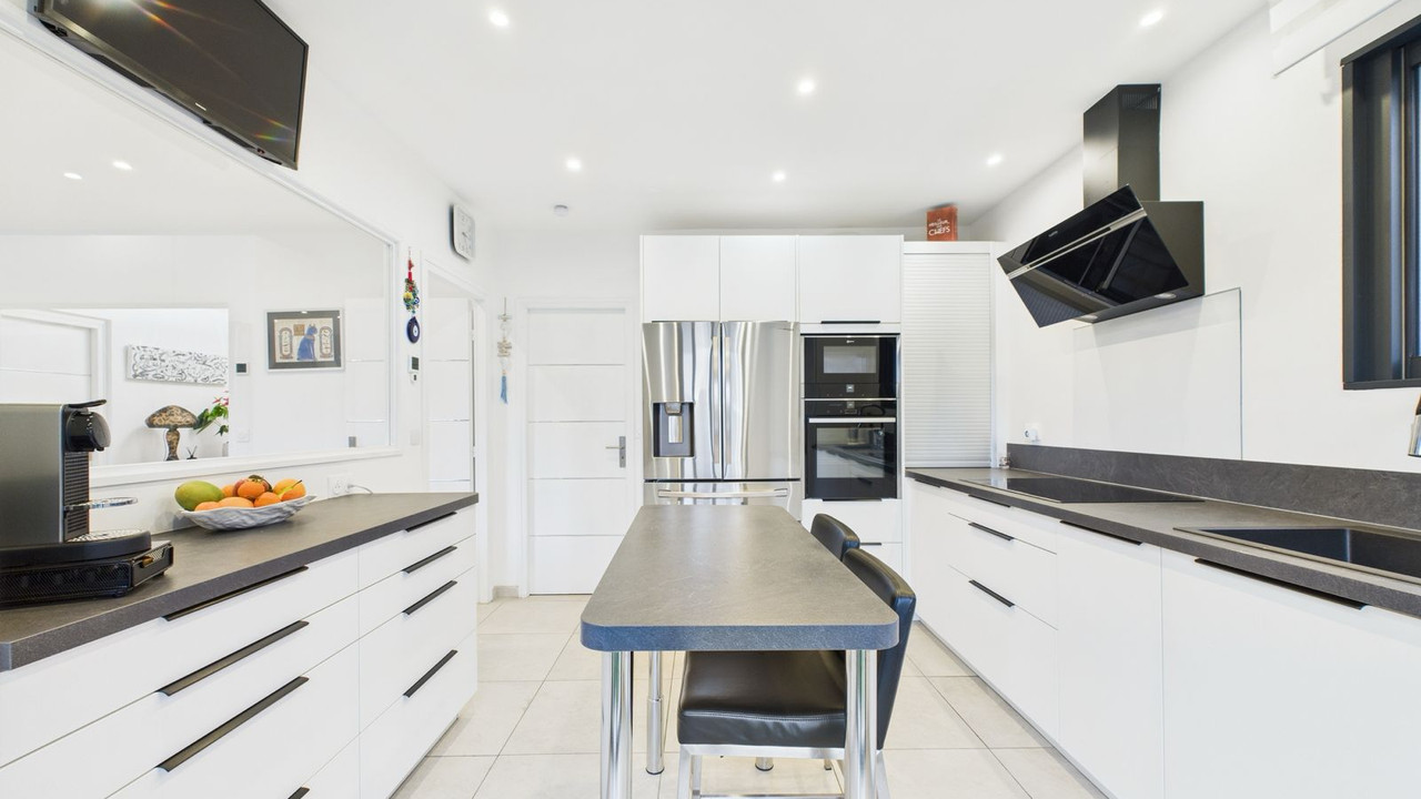 Bathed in natural light, the main reception room opens onto a covered terrace ideal for outdoor entertaining, while the fully equipped independent kitchen and pantry combine style with practicality.