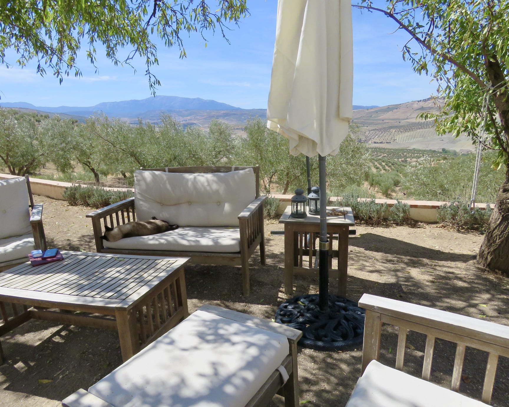 The principal access is via a delightful road winding through almond and olive groves, off of which is a short track which winds down to the farmhouse.