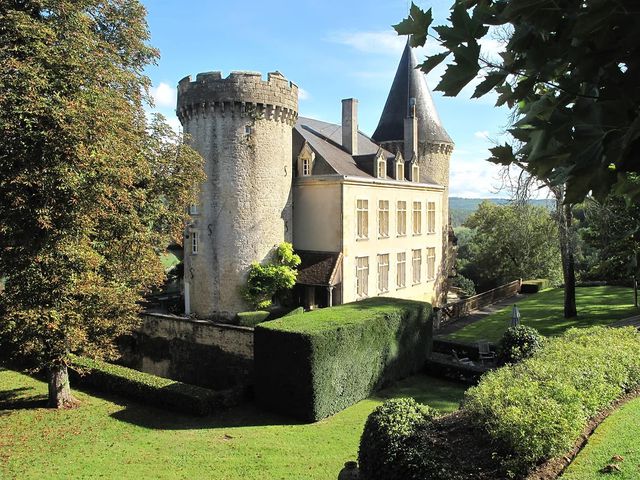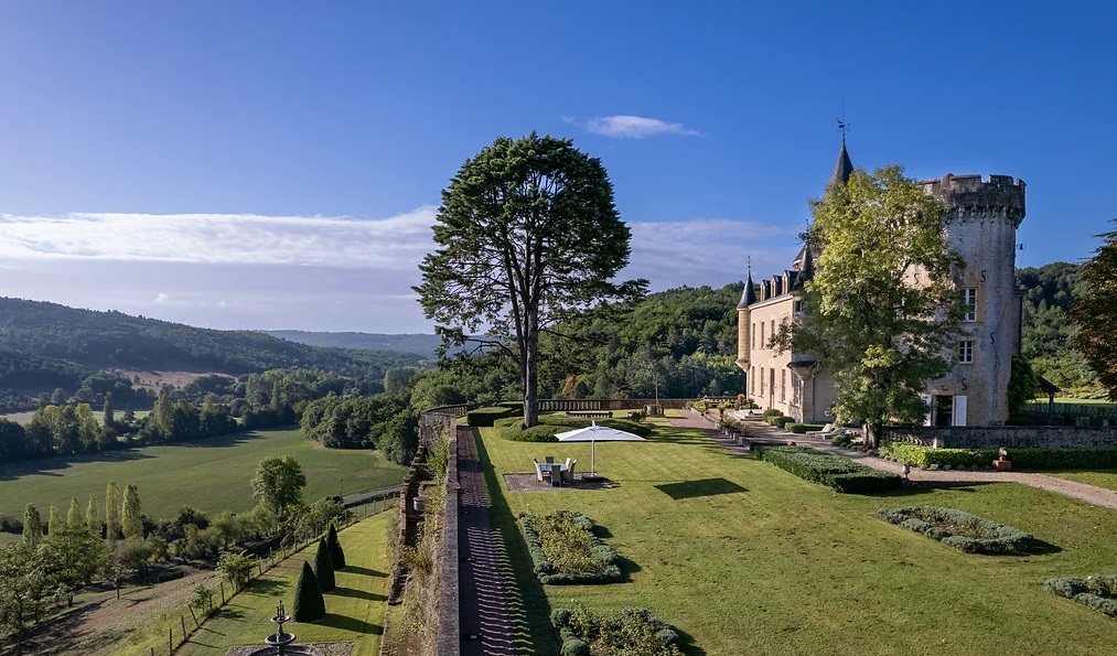 Magnificent castle on 60 ha with guest houses, pool and view. Dordogne