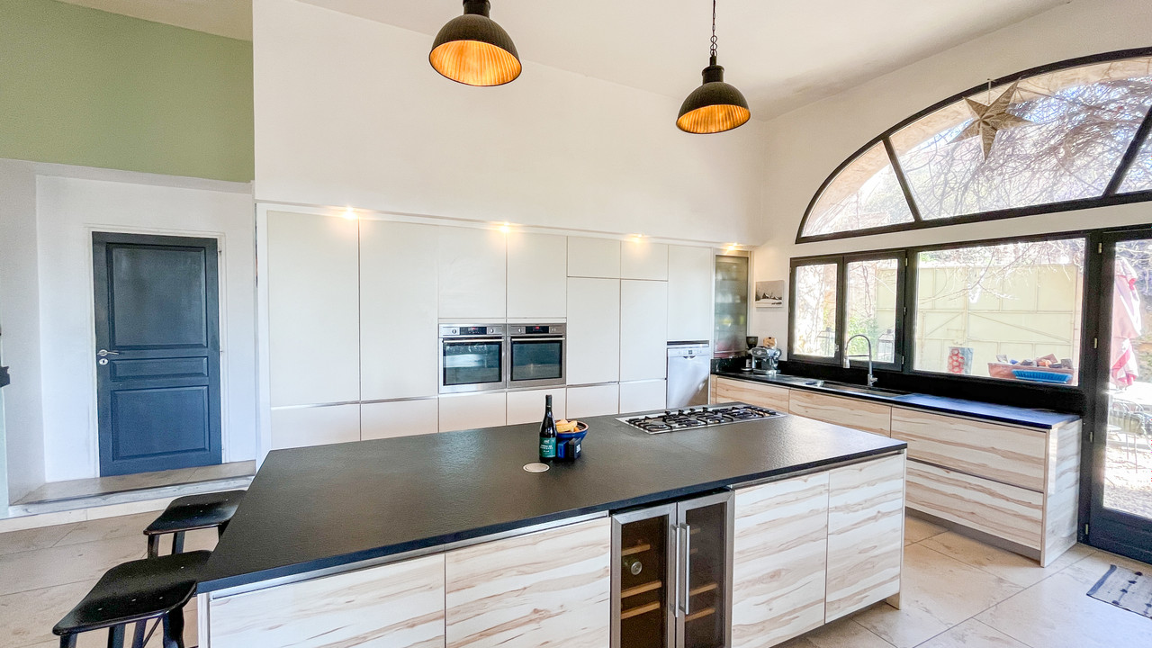 A34112DAL34 - Large maison de maître offering 375 m² of living space over three floors, with a large terrace & garden with great views. The property features a bright 89 m² open-plan living area, seven bedrooms, four bathrooms, and an additional 54 m² lounge with views towards the coast. There is plenty of space for a large family or the potential of creating a business. located just a few minutes walk from the centre of the village that offers a lively community and lots of amenties including two great resturants, wine bar and bakery.