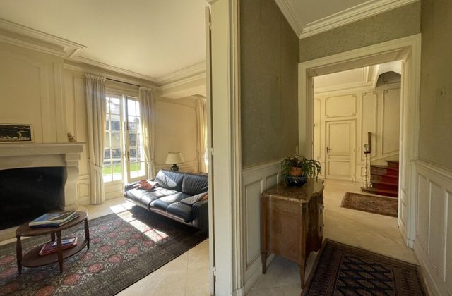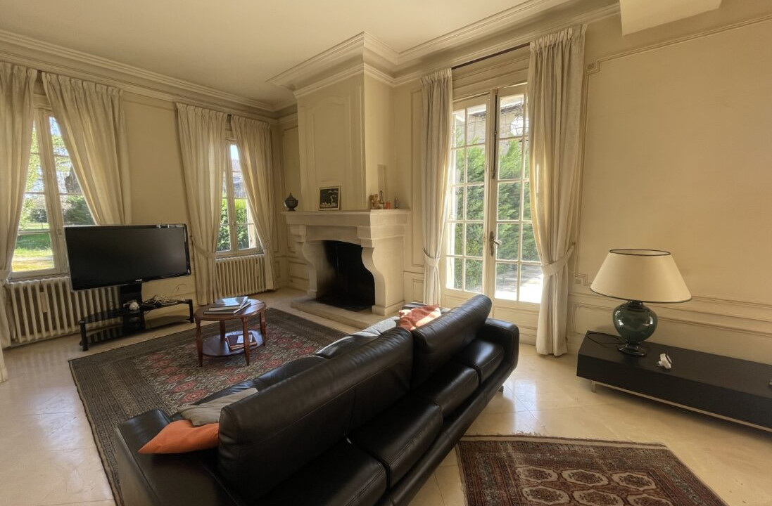 The 19th century limestone house has beautiful fittings, all the rooms are spacious and bright, very high ceilings with original moldings, woodwork, double doors, beautiful floors etc. With its old adjoining winery and its non-adjoining outbuildings it really forms a very pretty ensemble, which is suitable for different projects. Situated in a lovely park with mature trees, surrounded by an imposing original fence and stone pillars!