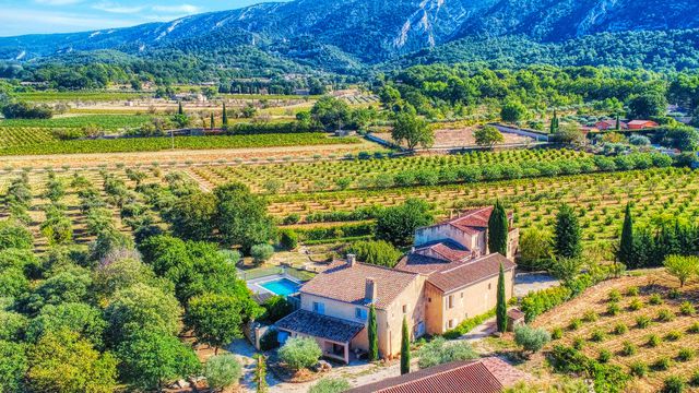 A23213 - In the Provencal village of Maubec, facing the Lubéron mountains, lies a magnificent agricultural and tourist estate with a main house of around 250m², swimming pool, sauna, jacuzzi and 4 gîtes, all set in 3.592 hectares of fully fenced land planted with pomegranate, olive, fig and truffle oak trees.