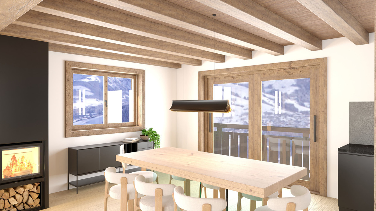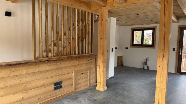 The property is nearing completion and makes full use of wood, stone and glass and is very well insulated with a double A rating , underfloor heating from an energy-efficient heat pump and is ready for you to install the wood burning stove of your choice in the living room. After an active day on the slopes it's a perfect place to relax and to catch up with friends and family.