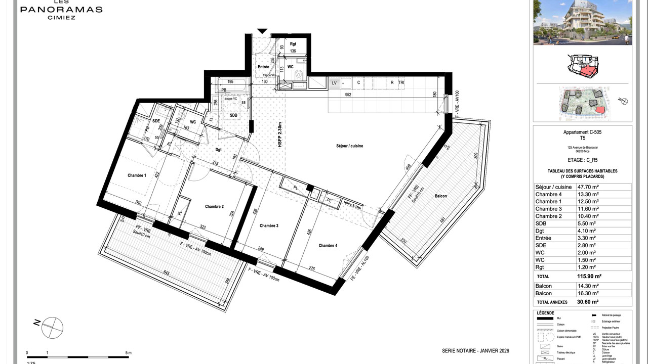 A43703OVI06 - Nice - Cimiez. Off-plan apartment. Located on the 5th floor, bright 4 bedroom.