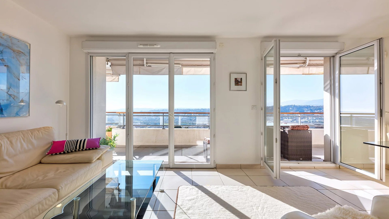 A42080ATB06 - NICE - FABRON: Bright 4-room top-floor apartment with magnificent views and a garage. Located in a quiet residential area, just a 10-minute drive to the Promenade des Anglais, this 78.75 m² top-floor apartment offers breathtaking 180° views.