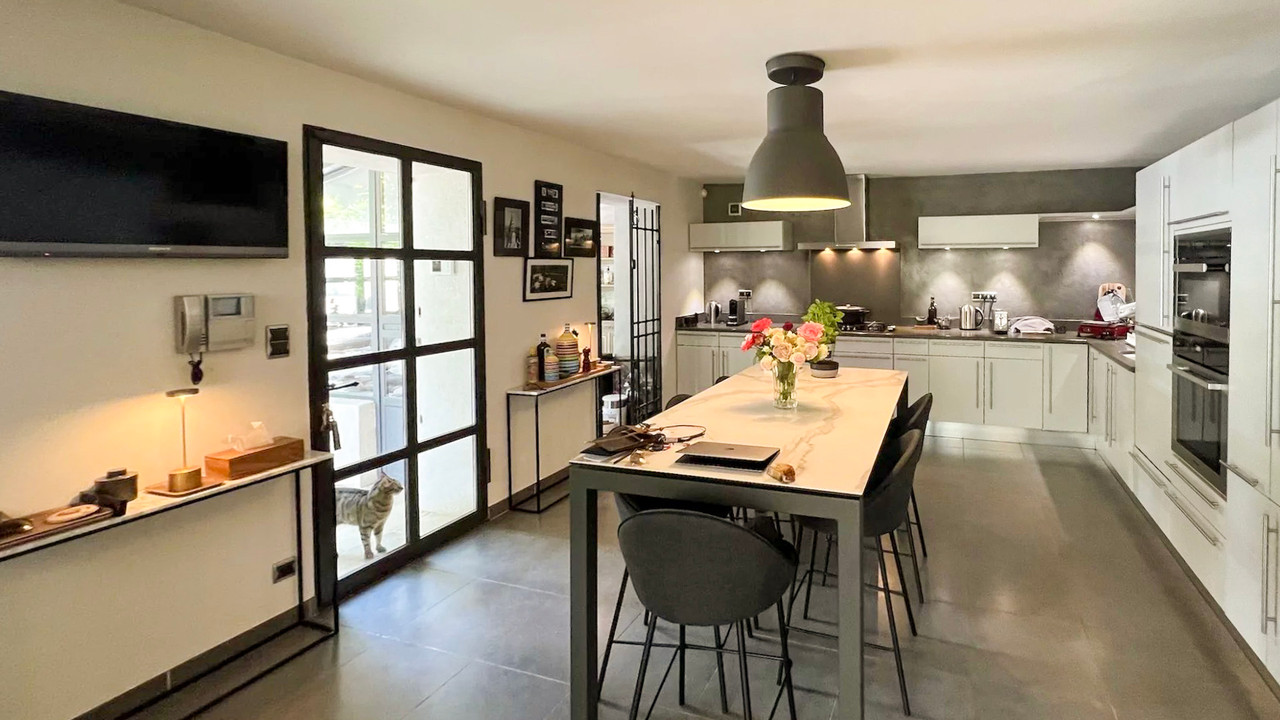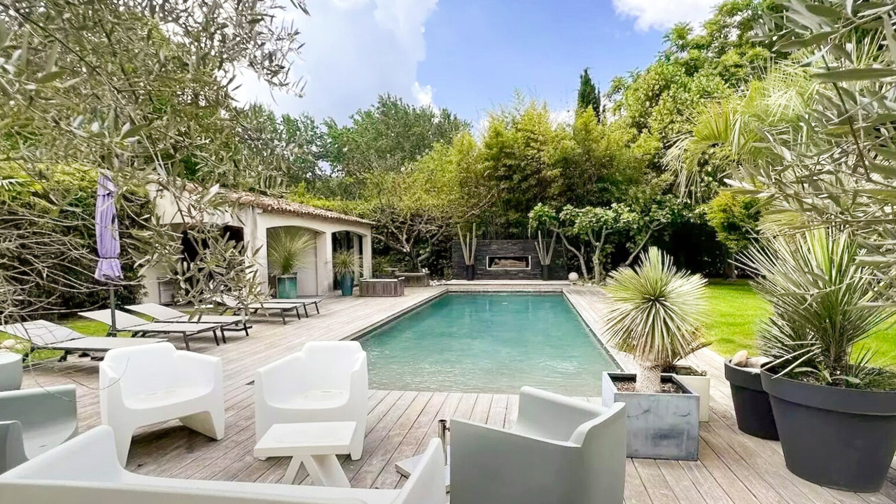 A29181LOS13 - Old stone former hunting lodge well-located just outside the village of Ventabren, near Aix-en-Provence. Built in 1850, the house and outbuildings have been renovated with quality materials. This 5 bedroom, 4 bathroom character property offers Provençal authenticity married with smart modern and comfortable living set in 2 526m2 of grounds planted with Mediterranean shrubs, trees and fruit varieties along with a 12 x 4m swimming pool surrounded by teak wood decking and adjacent pool house with summer kitchen. An independent studio, large garage and additional parking area complete this lovely family home or secondary residence with business potential as well. Close to amenities in the village and a short drive from Aix-en-Provence which offers fine dining, shopping, leisure and cultural activities, main road connections to the coast, the Luberon natural park and also to the Alps.