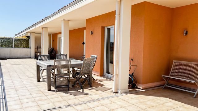 This exceptional penthouse is listed at €1,199,000 (agency fees included). It forms part of a residential complex with 37 main lots and 60 secondary lots, with monthly charges of €285.