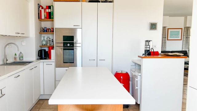 Upon entering, you are welcomed into a bright living room with large sliding glass doors opening onto the two spacious terraces, allowing natural cross-ventilation and continuous light throughout the day. Adjacent to the living area is the fully equipped semi-open kitchen, positioned directly beside the rooftop, as well as the master suite with its private bathroom.