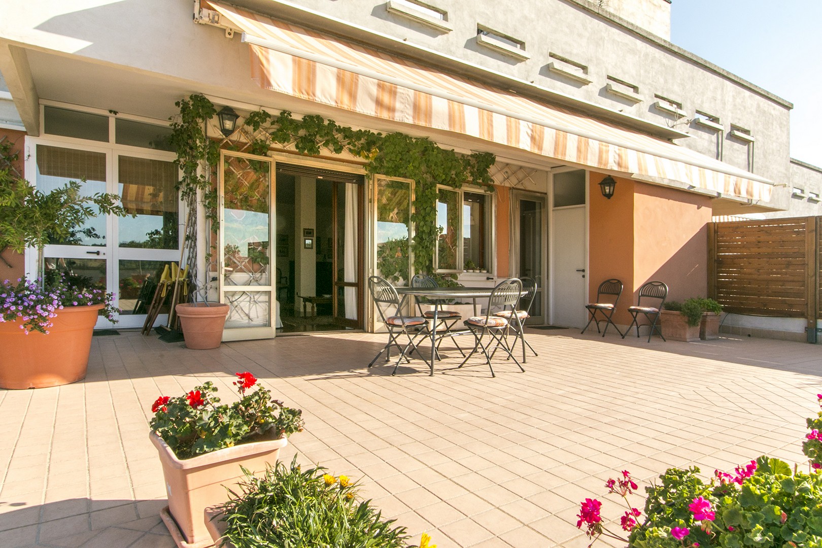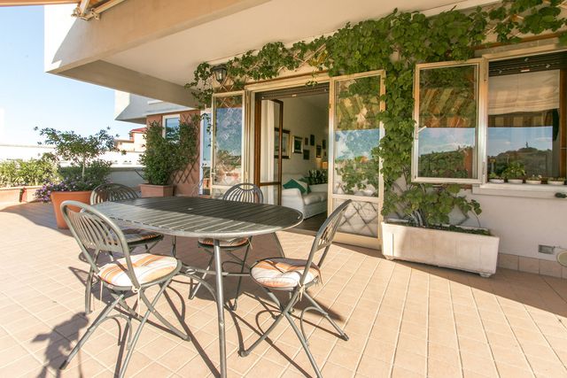 The apartment sizes about 150 square meters is located on the top floor of a building of only four floors, served by a lift. Entering the apartment you will find yourself in the beautiful, spacious and bright living room that opens to the magnificent terrace of about 240 square meters, with incredible views of the sea, the Marche hills and the city of Fermo, this image will immediately give you an unexpected feeling of well-being.