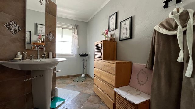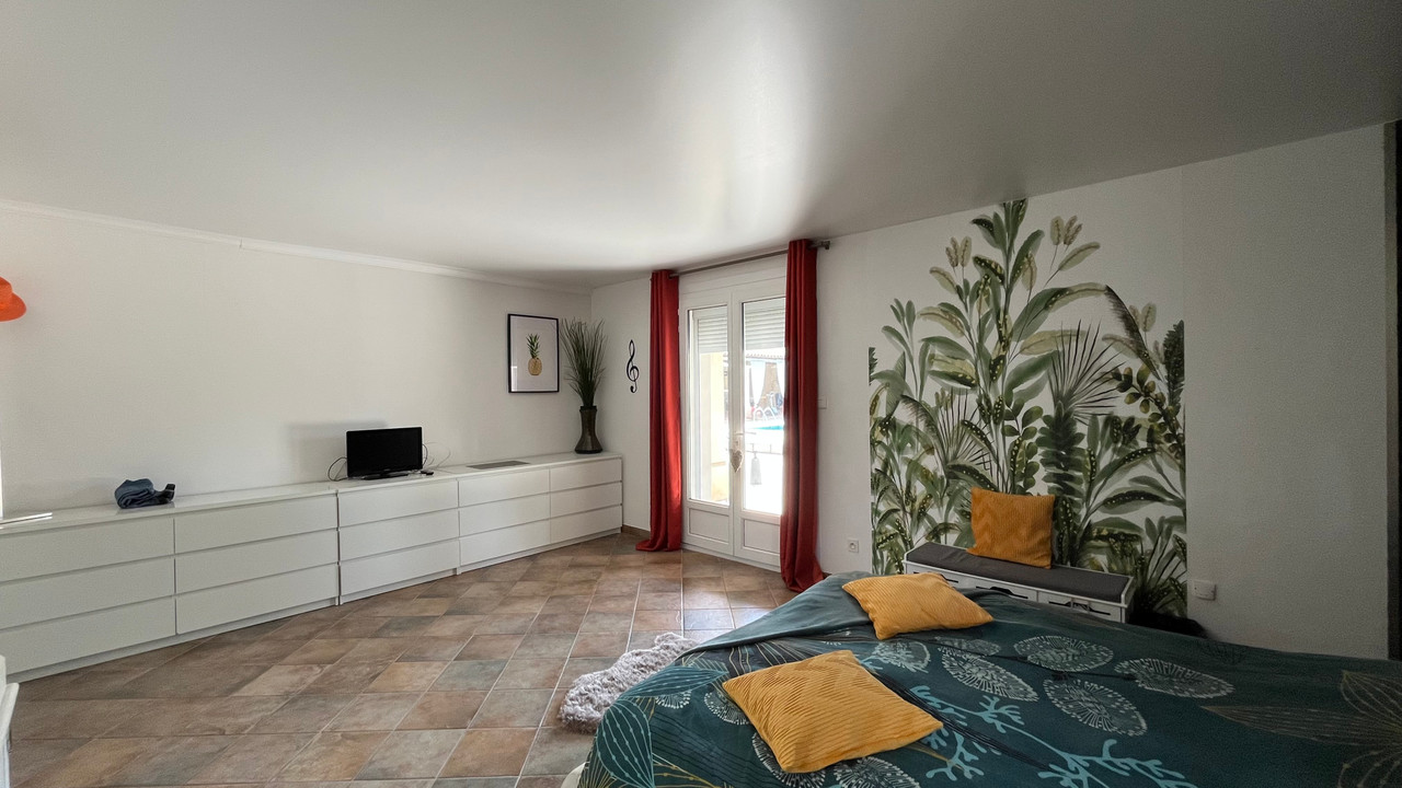 A38756CHS84 - *Property comprising two separate dwellings: a main building of 227 m² on one level, comprising a spacious living room with fireplace, high ceilings opening onto a lovely shaded south-facing terrace, a semi-open kitchen equipped with high-end appliances and a dining area. The sleeping area has 3 bedrooms, two of which have en-suite bathrooms, a dressing room, a bathroom (spa, hammam) and plenty of storage space. The large pool house is equipped with a summer kitchen with pizza oven and also has a separate bedroom with en-suite shower room. The magnificent 3,500 m² garden, planted with Mediterranean trees and not overlooked, features a 13 x 6 swimming pool.