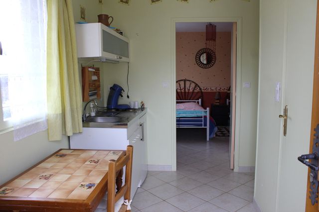 Returning to the ground floor: independent entrance with a small kitchen, bedroom, shower room with toilet.