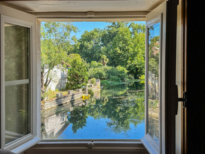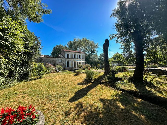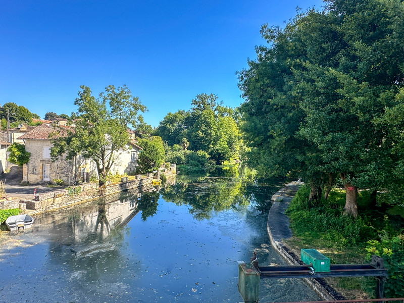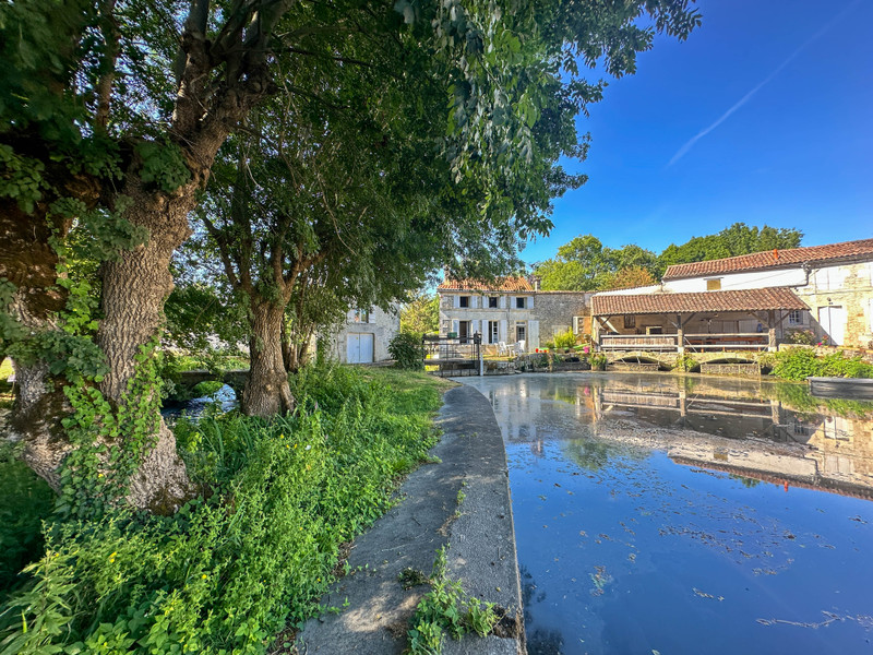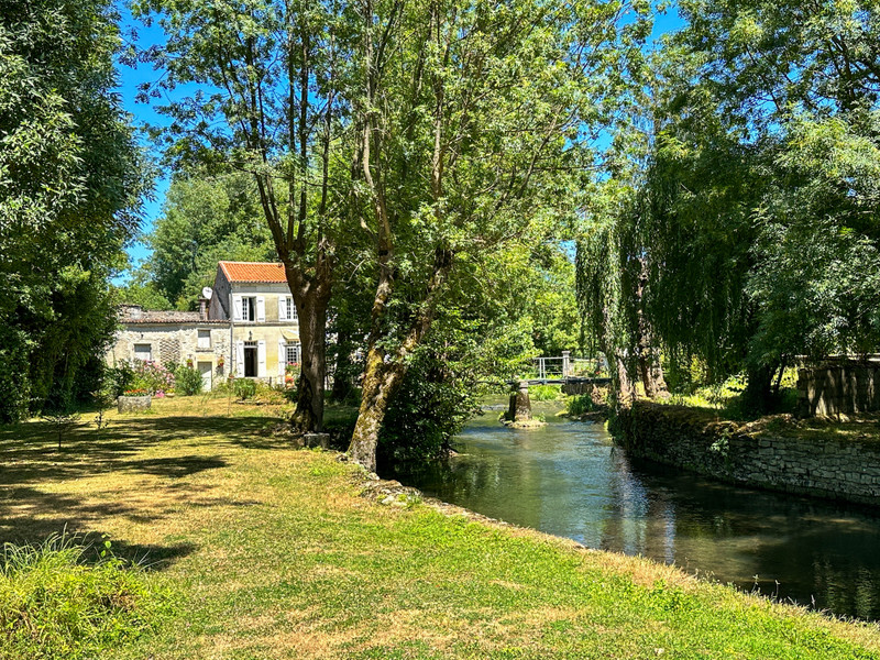 Set on the outskirts of the bustling town of Cognac , renowned for the spirit and annual blues music festival , this is a fully restored 18th century mill house set on a branch of the Charente river with exceptional views from each side of the property .