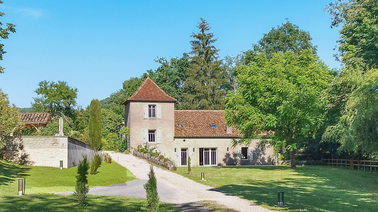 A42125NK46 - Just a short walk from the heart of Montcuq, this beautifully renovated character home offers privacy, elegance and the charm of village life in the sought-after Lot region. Set within a fully enclosed 3,600 m² garden bordered by a small stream, the property combines authentic architecture with high-quality modern comfort. The main house features a spacious kitchen and dining room with fireplace, a light-filled living room opening onto the garden, a luxurious master suite and three additional bedrooms. A wellness area with sauna adds a touch of indulgence, while a charming independent pigeonnier tower provides guest accommodation. Outdoors, a fully renovated 12 x 6 m swimming pool, covered terrace and summer kitchen create the perfect setting for long lunches and relaxed evenings with family and friends. Sold fully furnished and ready to enjoy, this is a rare opportunity to experience refined SW French living, within easy reach of Cahors and the airports of Bergerac and Toulouse.