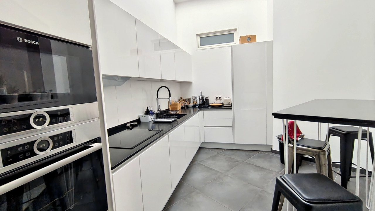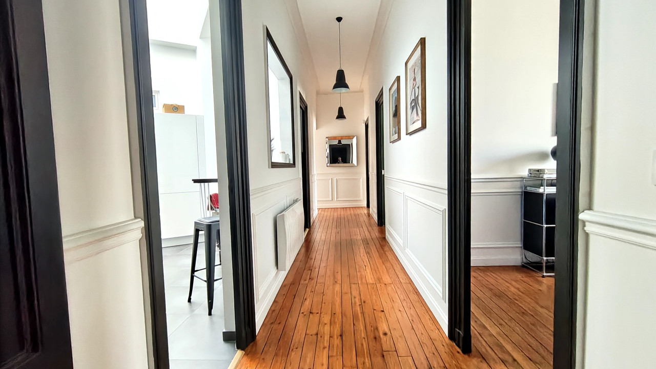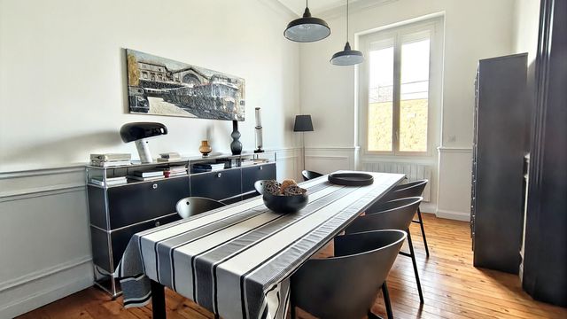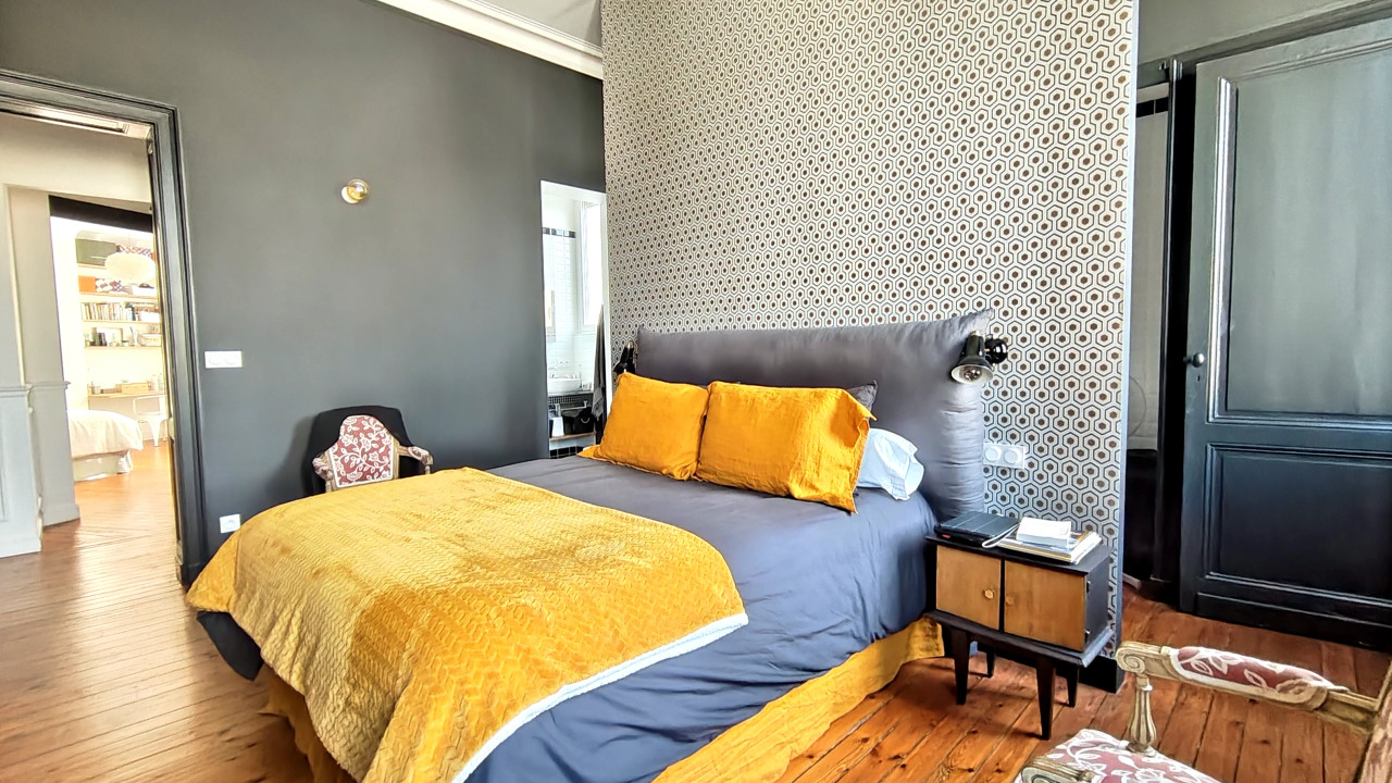 A42037BTU33 - Renovated top-floor apartment located in a beautiful stone building in the highly sought-after Fondaudège district. Offering 180 m² of total floor space (164 m² Carrez), the property features a bright living room with adjacent formal dining room, three bedrooms, three shower rooms, a walk-in closet, a laundry room, and a home office that may serve as a fourth bedroom. High-end finishes include restored hardwood floors, high ceilings, a pellet stove, and a bespoke kitchen with professional-grade appliances. A dry 18 m² cellar and a secure parking space complete the property. Small 7-unit condominium with low HOA fees; new roof (2024). West- and south-facing, no overlooking neighbors. Turnkey and rarely available. Information about risks to which this property is exposed is available on the Géorisques website : https://www.georisques.gouv.fr