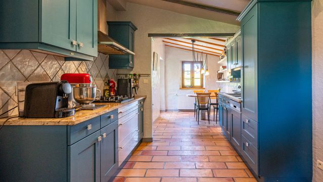 The main house, comfortable and welcoming, has two bedrooms and offers a pleasant living space, combining old-world charm with modern comfort. A few steps away, the large, fully equipped guesthouse has three bedrooms, making it ideal to welcome families. The smaller, more intimate guesthouse offers two bedrooms in an equally well-appointed setting.