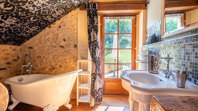 The main house, comfortable and welcoming, has two bedrooms and offers a pleasant living space, combining old-world charm with modern comfort. A few steps away, the large, fully equipped guesthouse has three bedrooms, making it ideal to welcome families. The smaller, more intimate guesthouse offers two bedrooms in an equally well-appointed setting.