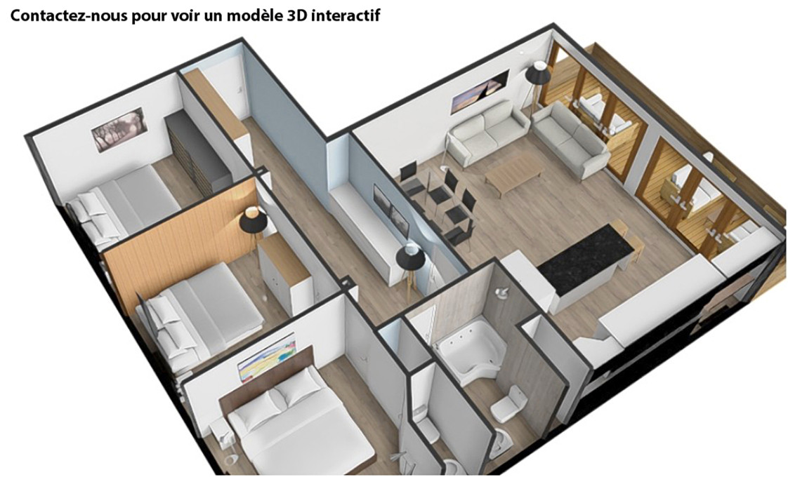 Long entrance hallway 3 double bedrooms, one with wc Bathroom with wc South-facing open plan living space with kitchen and dining area; doors onto large balcony Private cave (12 sq m), large enough for x5 bikes Residents parking