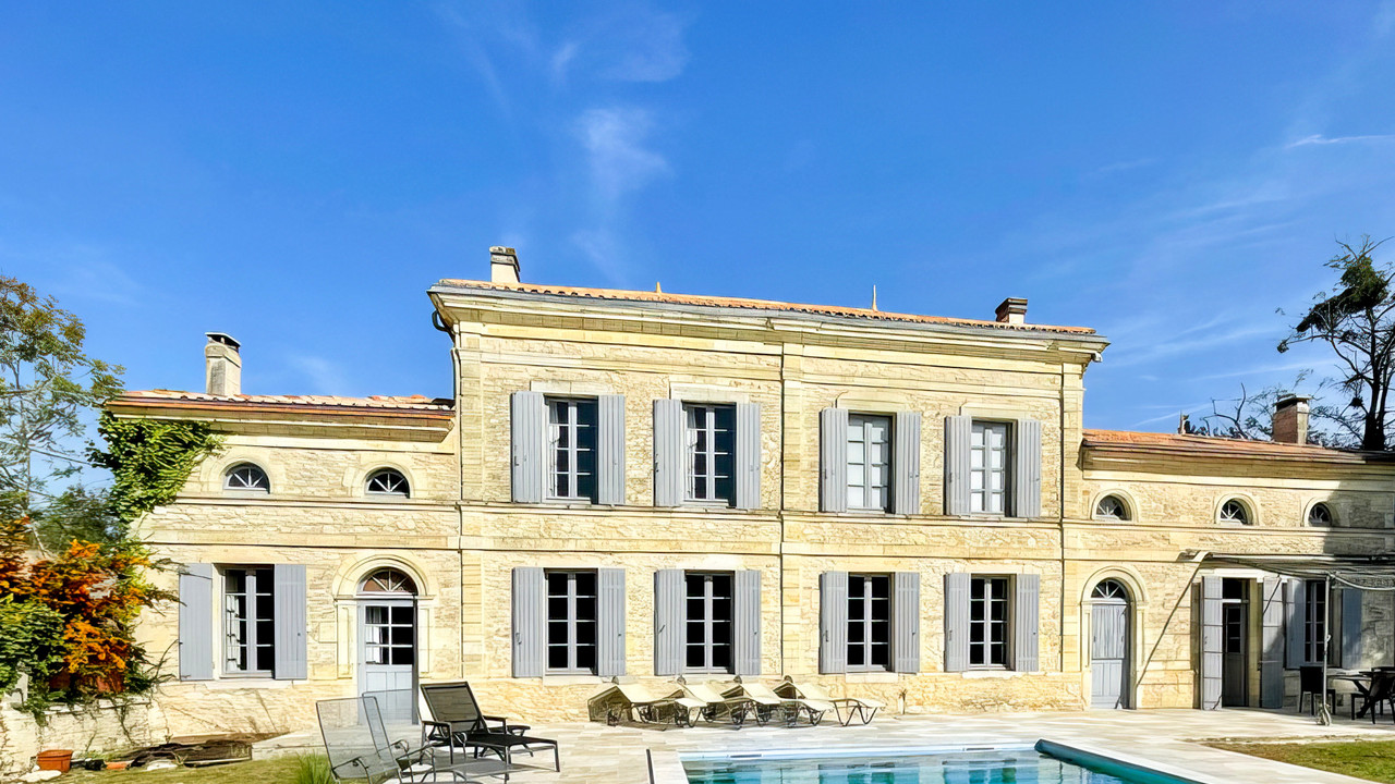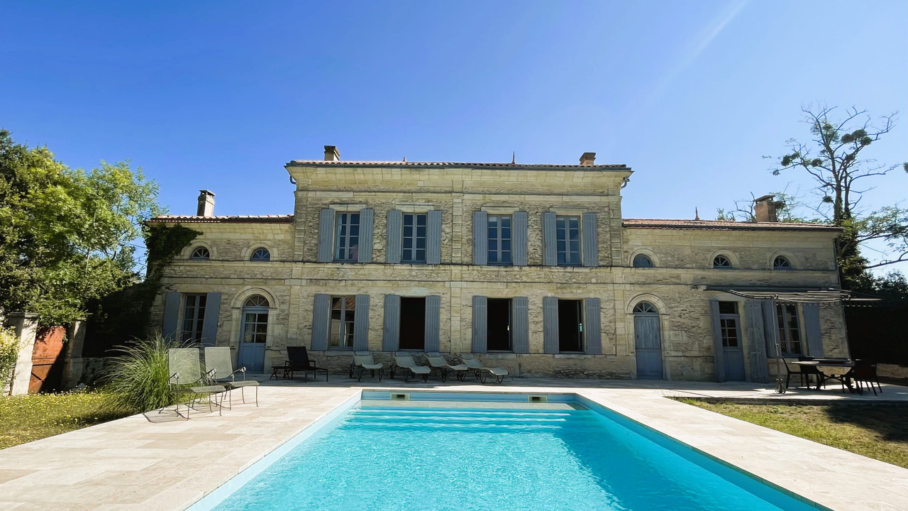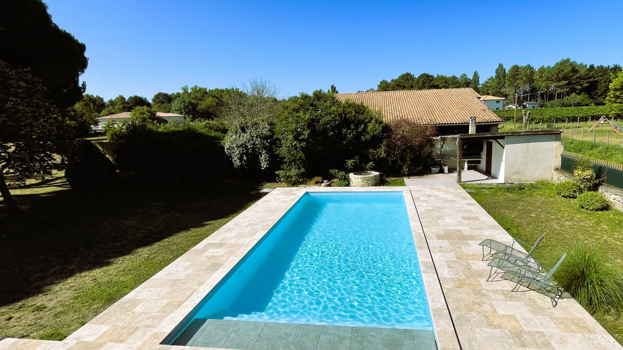 Stone house with 4 bedrooms. Garden, swimming pool, garage, outbuildings and workshop. Near Blaye