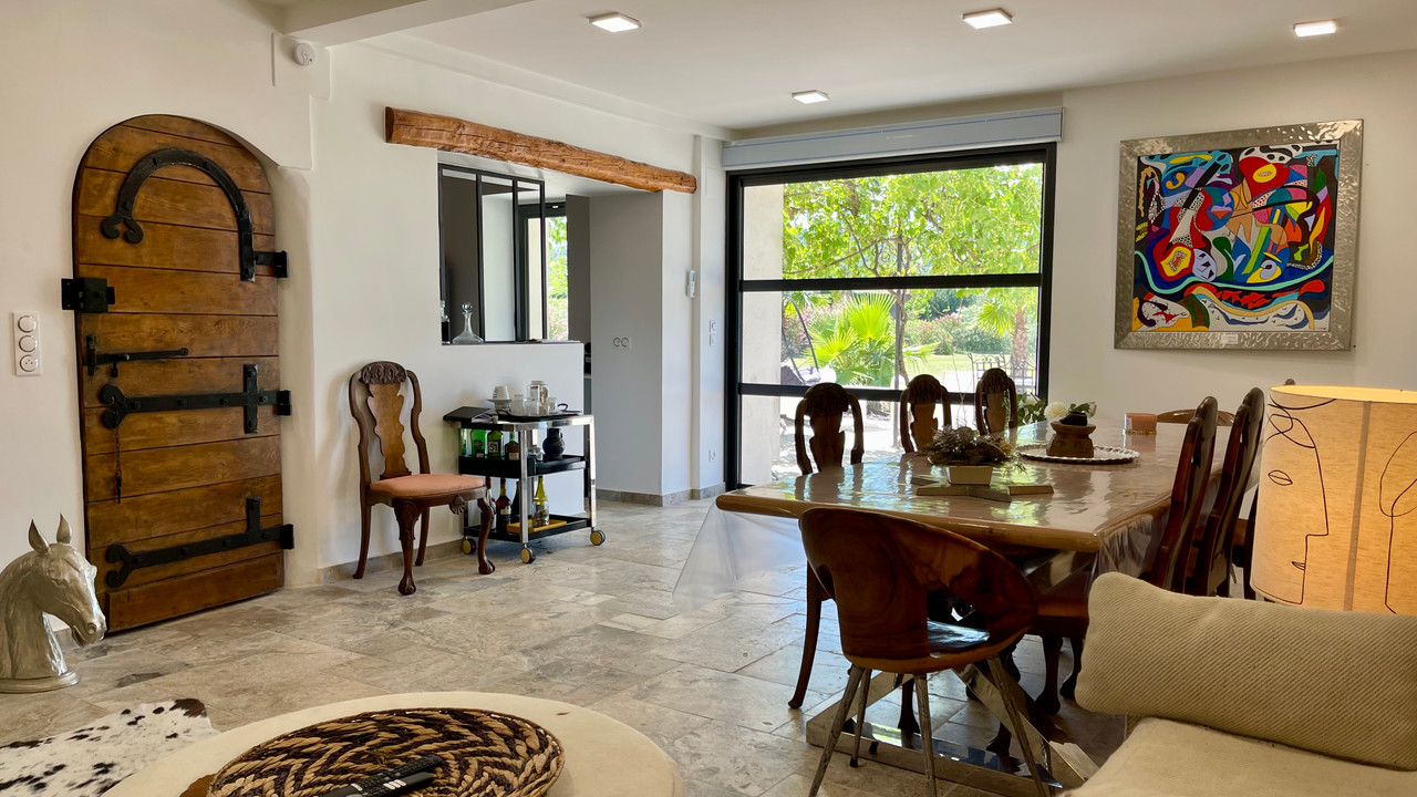 This stunning authentic bastide has been exquisitely renovated with natural materials, blending timeless Provençal charm with modern living. Featuring original stonework, solid oak beams, and reclaimed chapel doors, the property exudes character and elegance throughout.