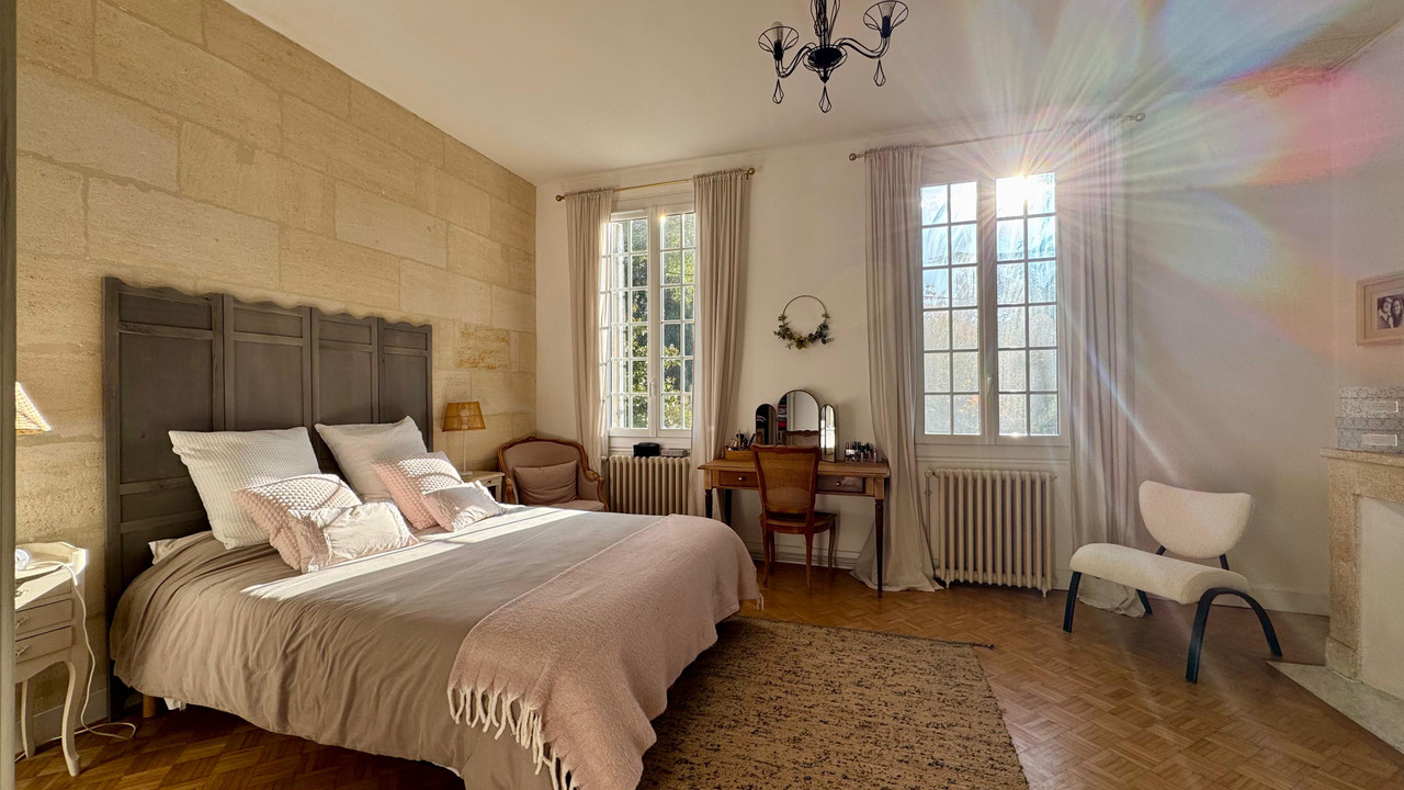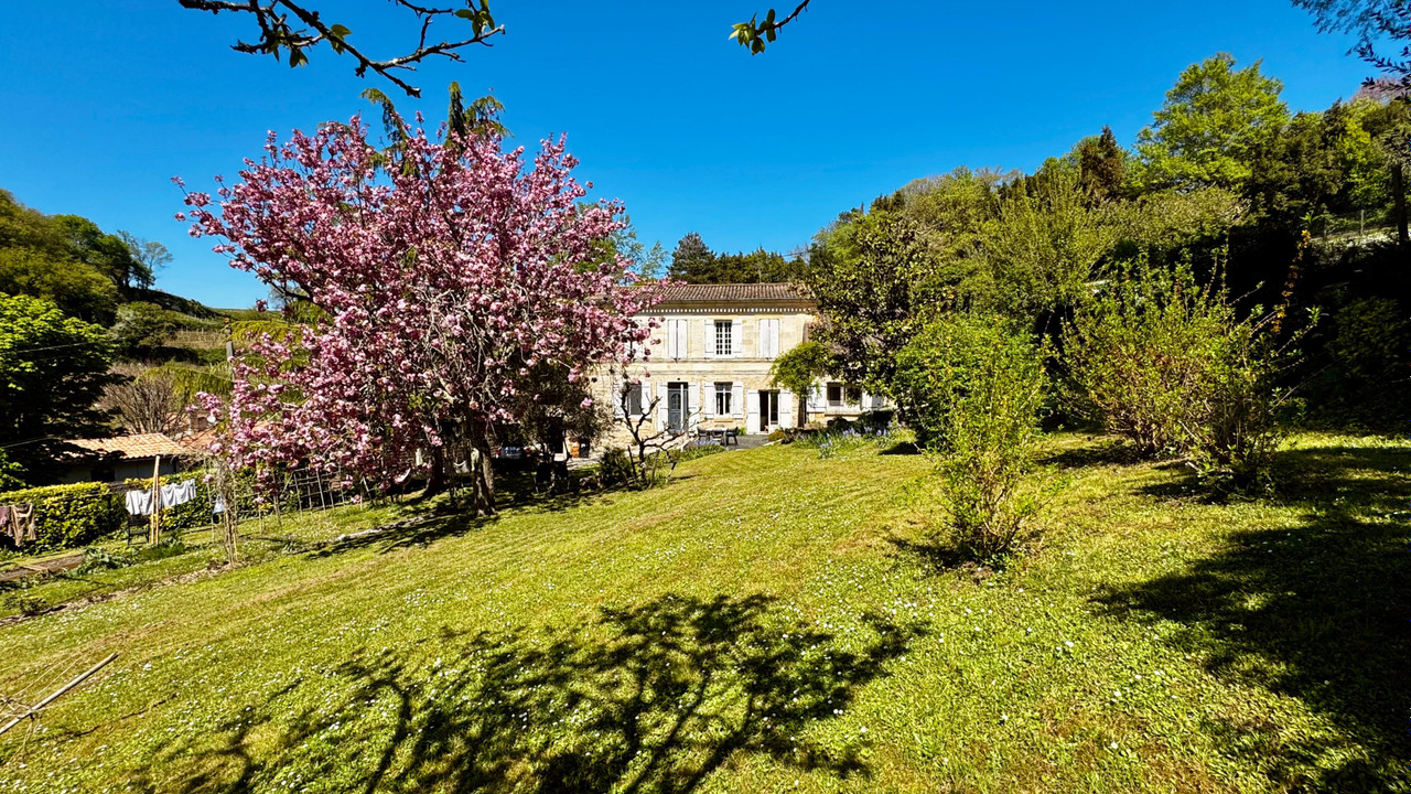 A40519MGD33 - Exceptional stone property comprising 4 bed main house plus separate gite/guest house, outbuildings/hangar & almost 3 acres of land. In the main house, entrance hall, large lounge with fieplace, beautiful dining kitchen, 4 bedrooms, 2 bathrooms, office/mezzanine, courtyard. Separate 1 bed (possibly 2) gîte with good rental potential. Large outbuilding. Stunning views. Near the village of La Rivière, close to Fronsac & Libourne.
