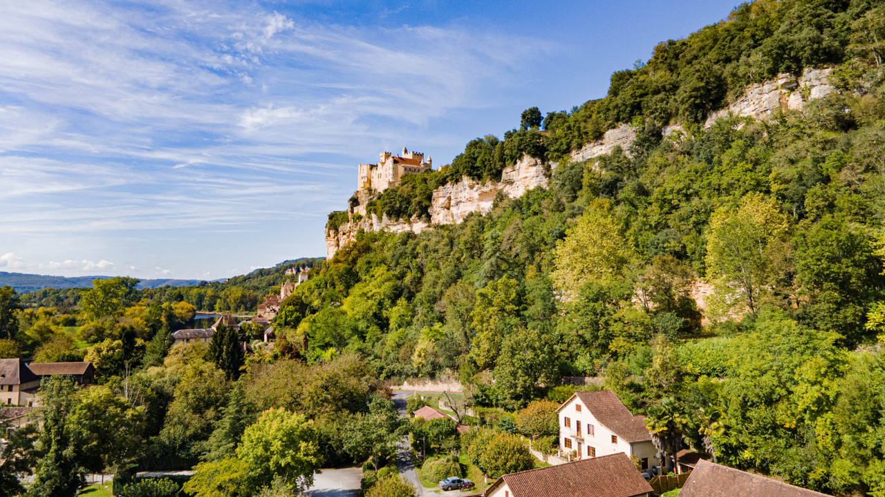 Meticulously restored, it retains its authentic character while providing light-filled contemporary living spaces. On the edge of the enchanting riverside village of Beynac and the River Dordogne, the property enjoys magnificent views of Château de Beynac