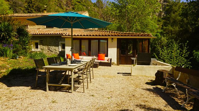Set along the tranquil banks of the river Argent-Double, the estate blends history and nature perfectly: ancient stone bridge, dramatic cliffs and lush greenery create a peaceful, natural atmosphere, while nearby the historic village of Caunes-Minervois — with its vineyards, local markets, artisanal shops, 9th-century abbey and restaurants , offers all conveniences just minutes away.