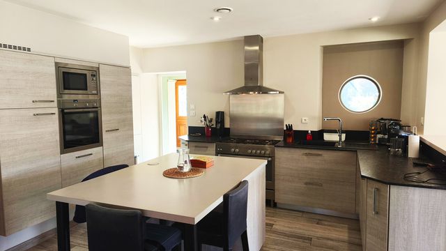 A36157MKS14 - Experience luxury living at its finest: This exceptional estate offers approx. 185 sqm of elegant living space, featuring 4 refined bedrooms, an open designer kitchen, and a bright, spacious living and dining area with a fireplace. Set on approx. 3 hectares of fully fenced, park-like grounds with horse pastures, the property boasts breathtaking views over a shimmering lake and an adjacent golf course. Unwind in the large heated outdoor pool, relax in the Jacuzzi, or entertain in style with the high-end outdoor kitchen and panoramic terrace. A private boules court and a charming guest house complete this rare offering. A serene oasis – exclusive, prestigious, and truly one of a kind.