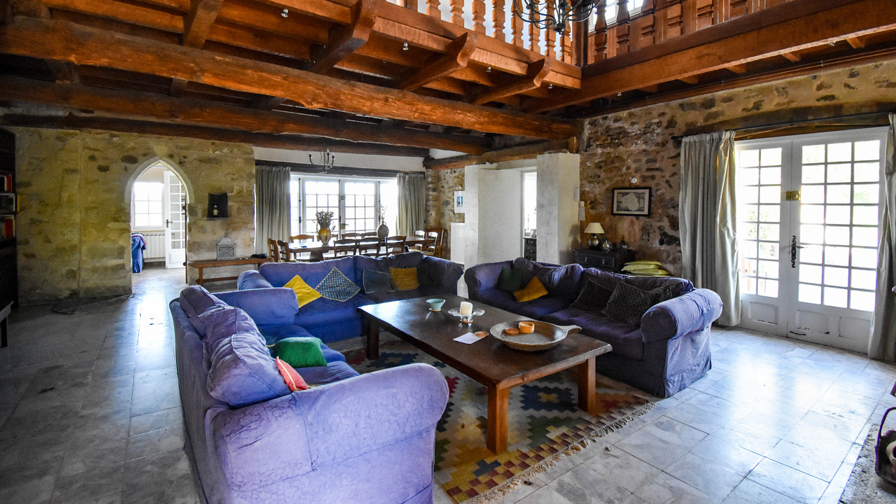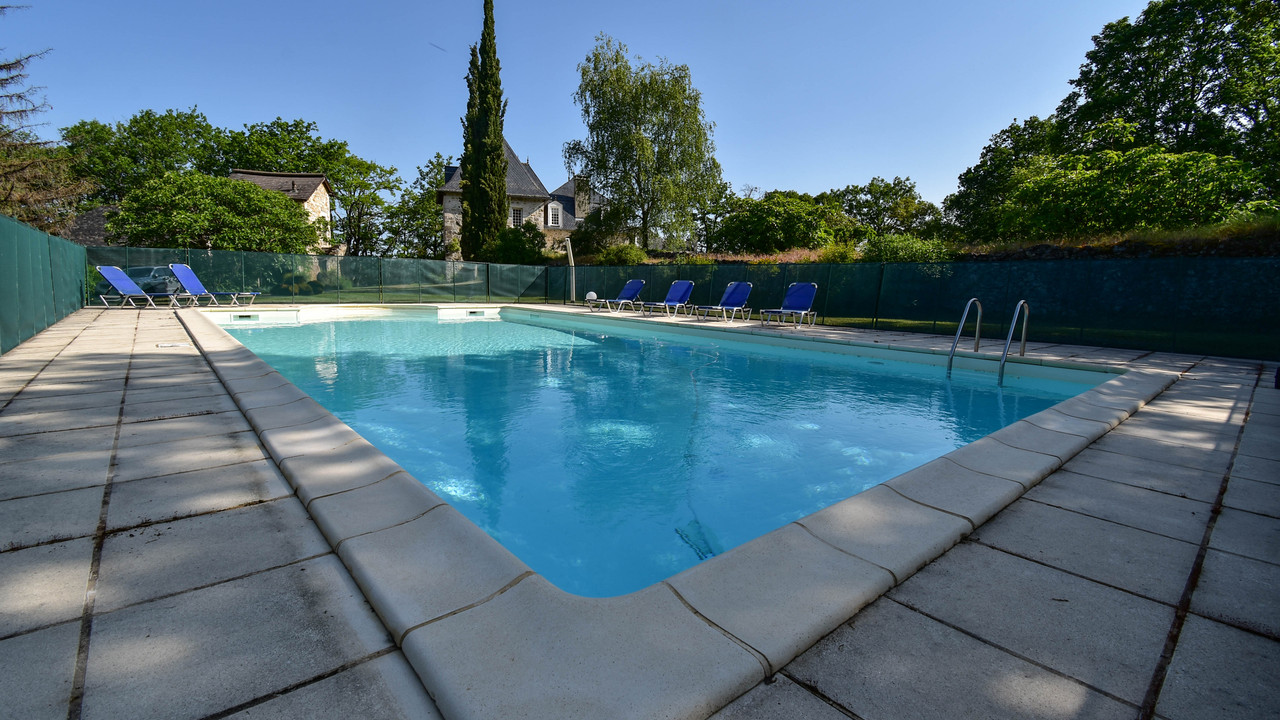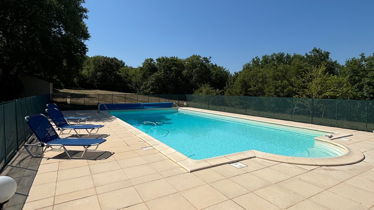 A19796AM24 - ‘ This exceptional property offers so much as a year-round family home or a lovely holiday home. It is completely private, set in ample grounds comprising terraces, gardens, meadow and woodland. There are amazing views over the vibrant, popular old town of Terrasson and across the Vézère valley. The property is within easy access of all the shops, services and restaurants of this historic town. It features a large swimming-pool (12mx6m), oil-fired central heating, 6 bedrooms ( four are en-suite) and a further shower room and utility room. There is also a cellar and large outbuildings which can serve as storage and a workshop with potential for conversion to a cottage.'