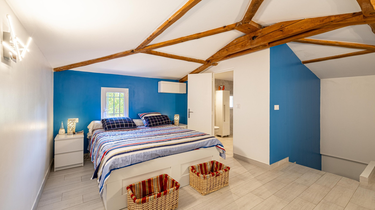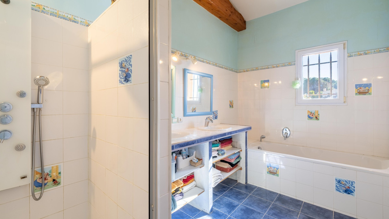 Villa 300m² on flat land 2 200m².5 beds, 3 baths, garage + outbuilding of 200m². Swimming pool.
