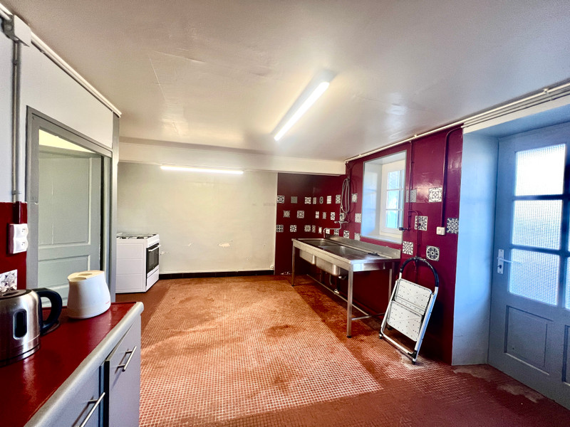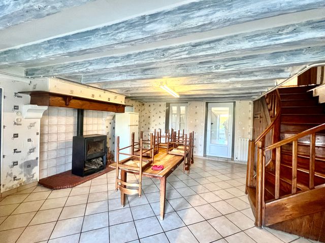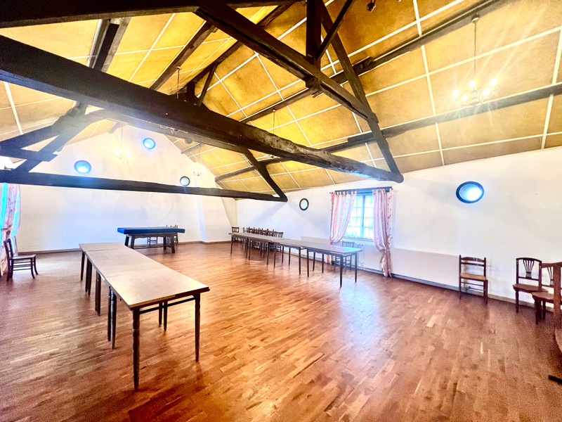 The property includes a habitable house with three bedrooms, generous ground-floor rooms, and space for kitchens, as well as a first-floor restaurant and bar and a large function room. With its combination of historic charm and commercial opportunity, and just 10 km from La Souterraine with excellent amenities, this property is ideal for a variety of business or lifestyle ventures.