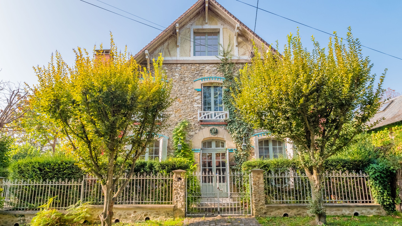 A42823BTX78 - Sole Agency - Yvelines - Between Villennes (78670) and Evecquemont (78740) and the future RER E - 19th-century residence located on a private, guarded island on the banks of the Seine with a private jetty. 10 rooms. 6 bedrooms. 6 bathrooms. Large reception rooms. High-end kitchen and utility room. 70m² master suite. Parquet flooring, period tiles, mouldings and fireplaces lend this residence undeniable charm. Cellar. Terrace overlooking a 2,600m² landscaped park leading to the river.