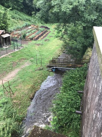 The 36,778 m² grounds offer spectacular tranquility while remaining close to the town center. Bisected by a canal, a river, and a charming little waterfall, the land provides shelter and sustenance for wildlife and retains coolness during heat waves. Without leaving your property, you can enjoy crayfish fishing, mushroom and wild plant foraging, as well as raising small livestock (poultry, sheep, etc.), tending a large, highly productive garden, and developing an edible forest area (approximately sixty fruit trees and shrubs, raspberry bushes, rhubarb, etc.).