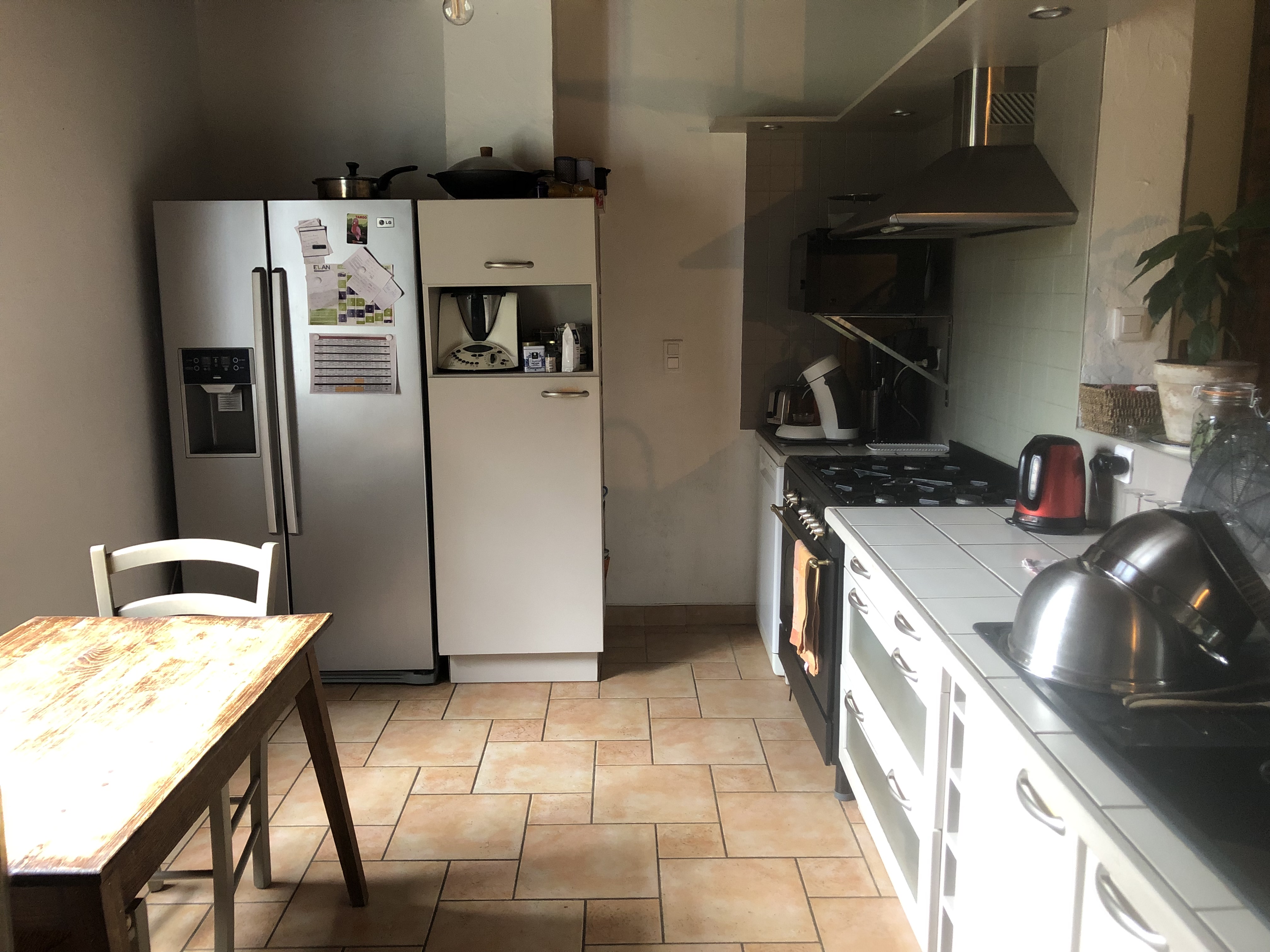 The main dwelling, measuring 165 m², consists, on the ground floor, of a large entrance hall, a laundry room and storage room, a boiler room with a water-to-water geothermal heat pump, and a workshop.