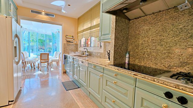 Offering approximately 345 sqm of living space, the villa has been designed for both comfortable family living and effortless entertaining. All five bedrooms feature en suite bathrooms, providing a high level of privacy for residents and guests alike. The main living areas are bright and generously proportioned, opening naturally toward the sea and garden.