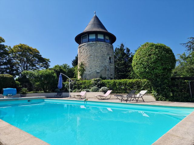 A large house with blue shutters and roses galore, a stone cottage and a renovated mill offering panoramic views across the famous vineyards of Margaux. No neighbours but close to the village, this is possibly the most romantic setting close to Bordeaux. The ideal property for a buyer looking for a unique character house that is also its own tourist destination. Located on the Médoc wine route surrounded by famous vineyards this property offers a home and two gîtes but could be remodelled to be a large family holiday rental, perfect for family events.