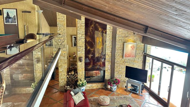 It includes 8 principal rooms: a spacious living area with a fireplace and an independent dining room, a superb kitchen with another dining area. 4 bedrooms and 2 bathrooms with showers. There is a large, well lit office space, laundry room, wine cellar, and pantry. Upstairs a large mezzanine open to living room with another bedroom adjacent. Two entrances allow access to the house; one a 2 car garage. Swimming pool (12mx6m, chlorine) with a pool house and a summer terrace. Well.