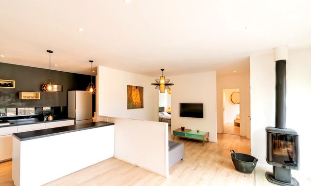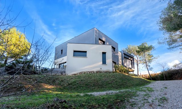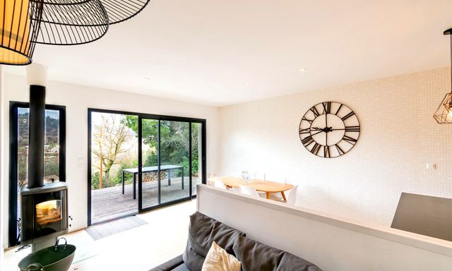 A41876CYV11 - Architect-designed property built in 2017 in Durban-Corbières, set against a hillside and offering open views from all three independent gîtes. Each gîte benefits from its own private outdoor living area and terrace, while one gîte also features a swimming pool and a wood-burning stove in the living room.
