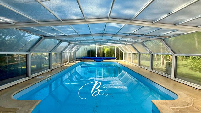 The harmoniously landscaped grounds feature a meadow and a magnificent garden with a front lawn, as well as an indoor swimming pool with a counter-current system. Below, a charming orchard and an outbuilding add to the appeal of this property.