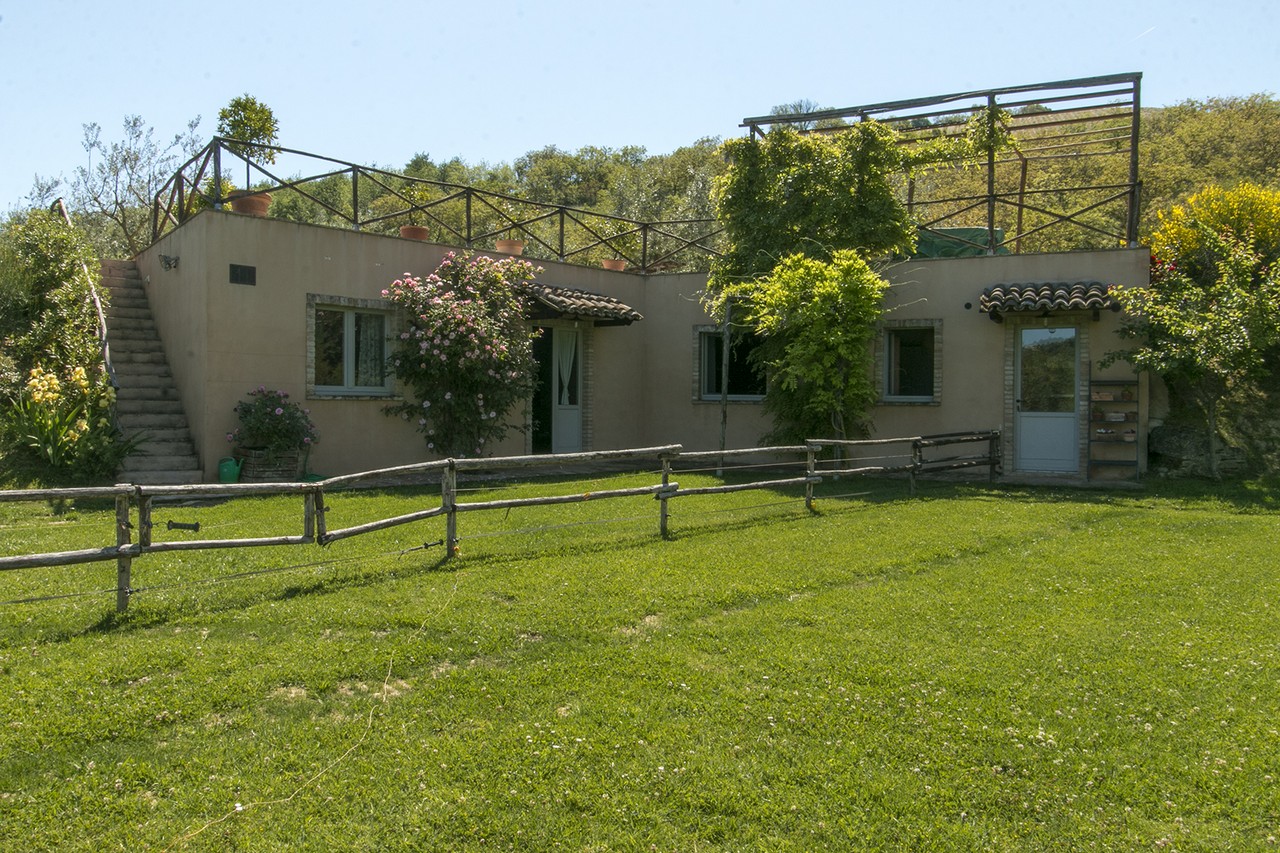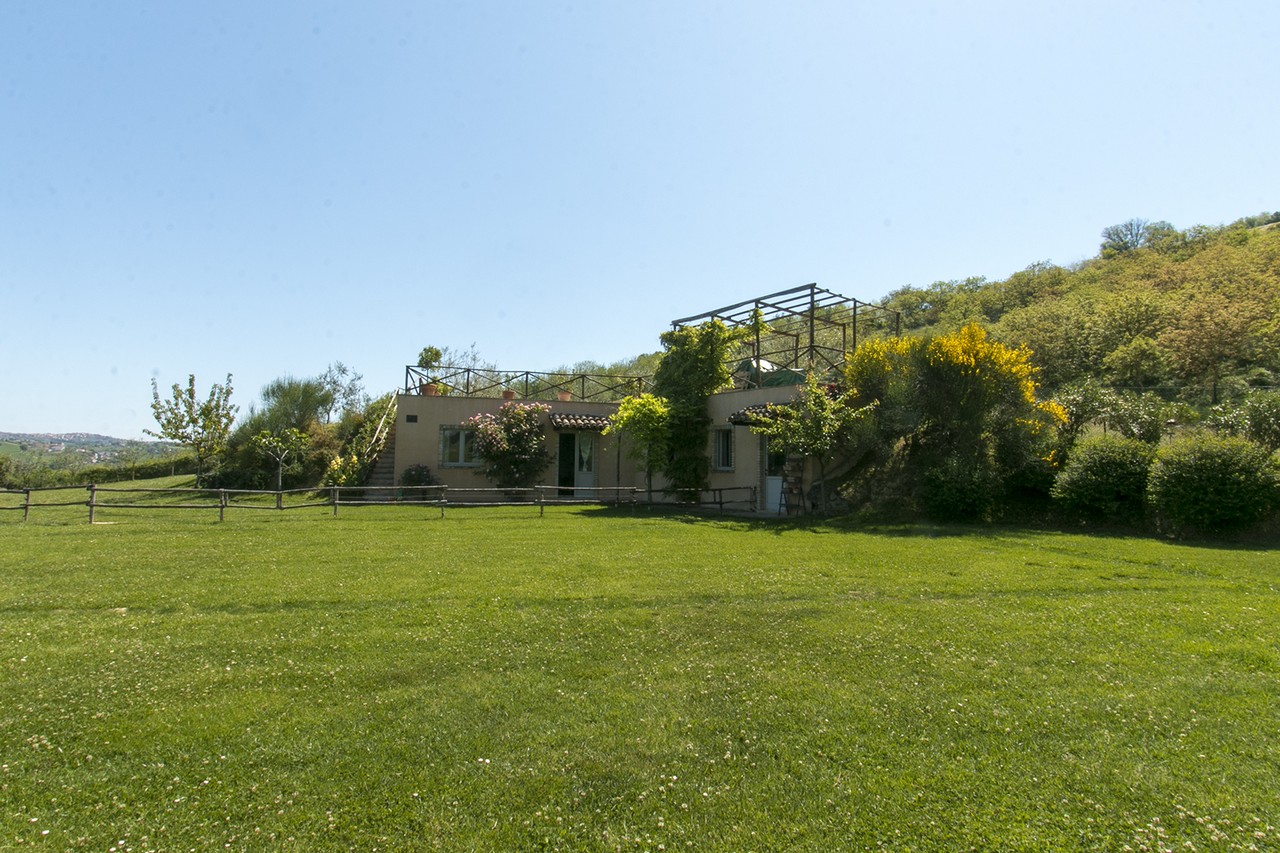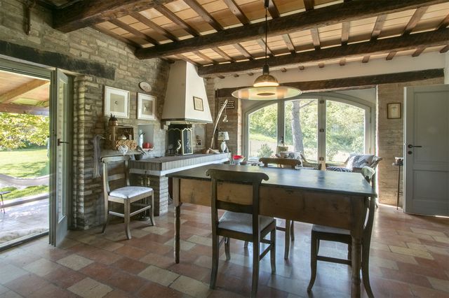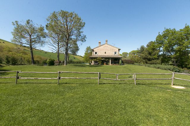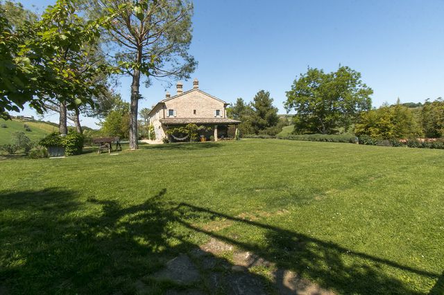 The main house was completely and beautifully restored. It is a classic example of Marche country architecture and includes on the ground floor, a kitchen with oven with access to a great portico area, a wide dining room, an indeed spacious living room, a laundry room and an ample garage, on the first floor, a wide living room with fire place, a master bedroom with huge ensuite bathroom, 3 double bedrooms one with ensuite bedrooms, the master and one of other bedroom have mezzanine floor too. The rooms are spacious and light.