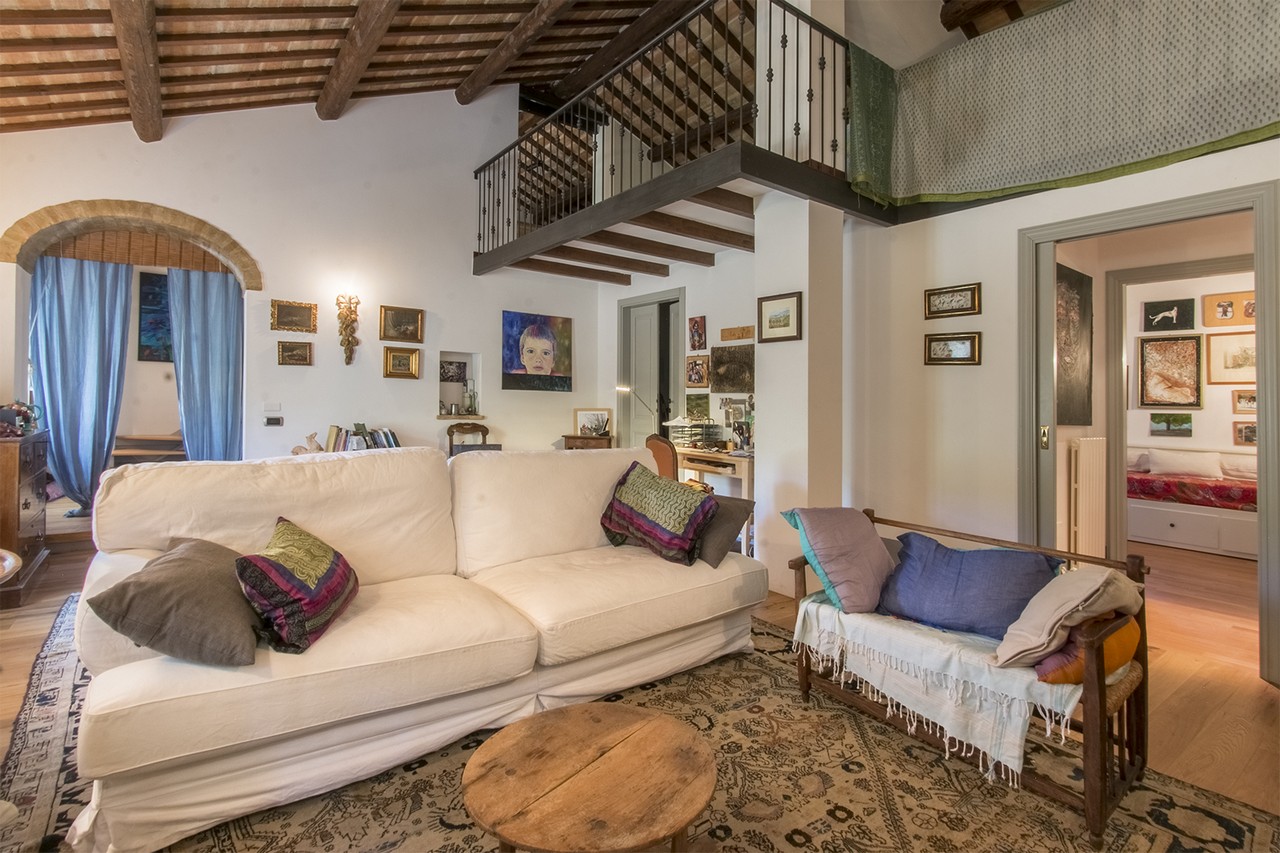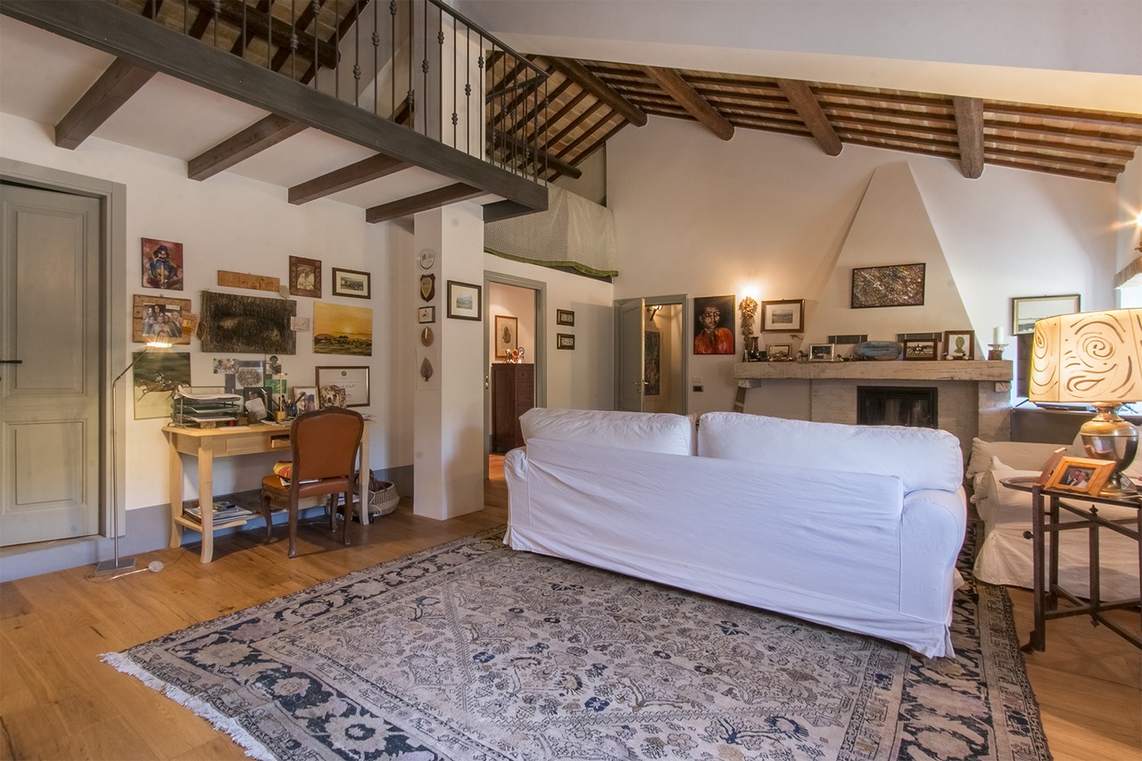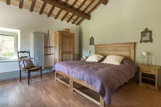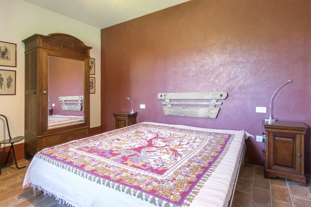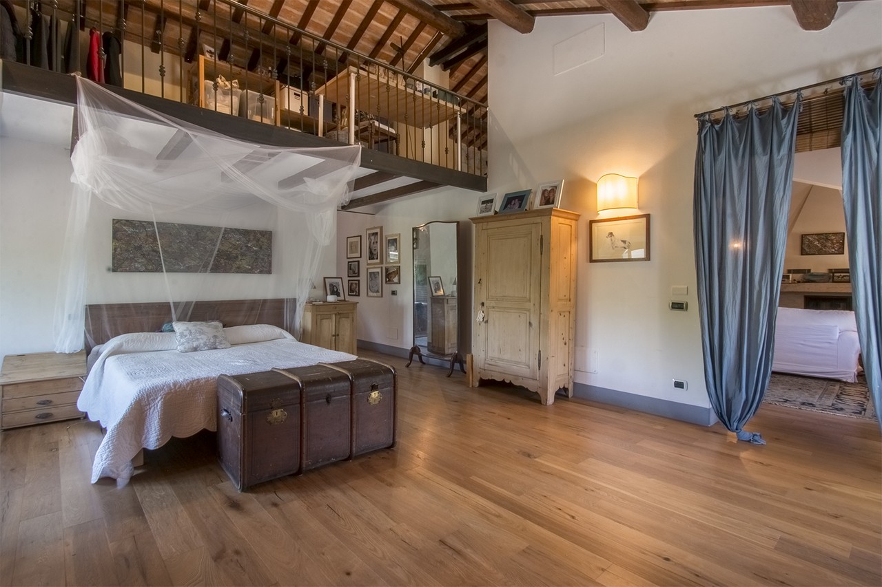 The main house was completely and beautifully restored. It is a classic example of Marche country architecture and includes on the ground floor, a kitchen with oven with access to a great portico area, a wide dining room, an indeed spacious living room, a laundry room and an ample garage, on the first floor, a wide living room with fire place, a master bedroom with huge ensuite bathroom, 3 double bedrooms one with ensuite bedrooms, the master and one of other bedroom have mezzanine floor too. The rooms are spacious and light.