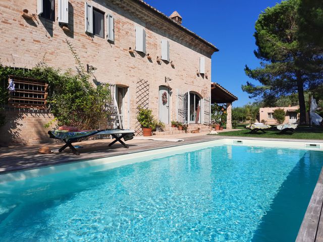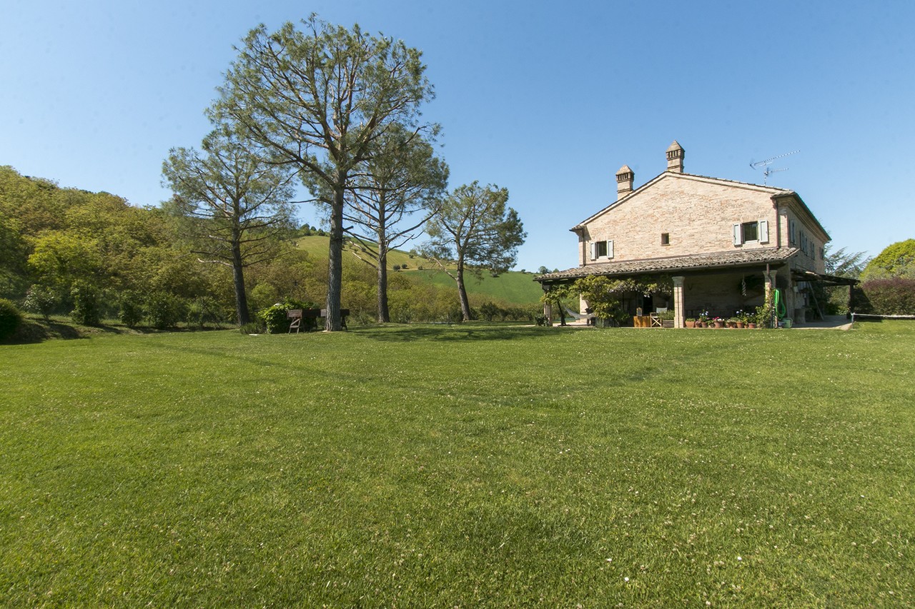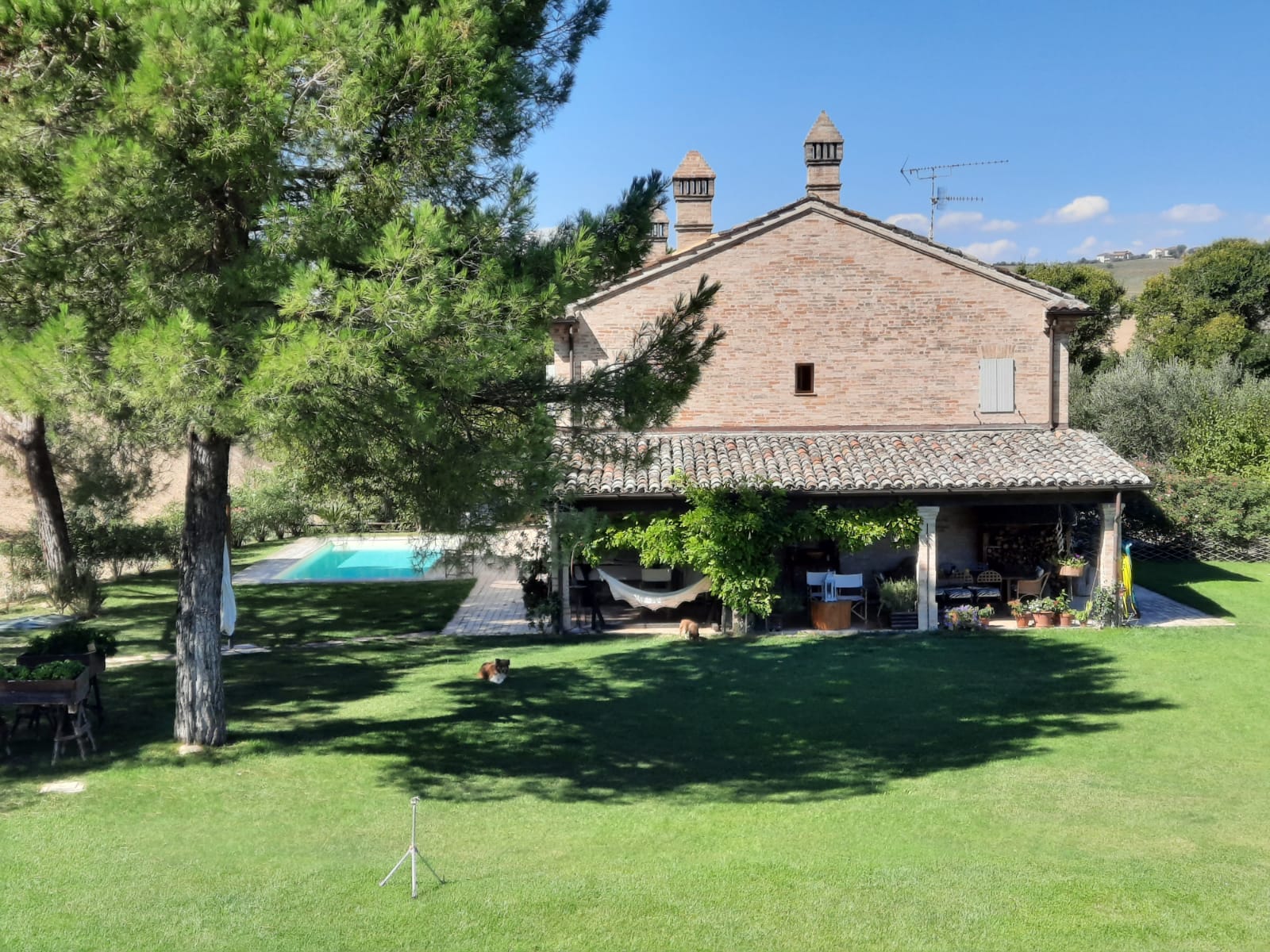 Beautiful restored farmhouse with ample mature garden, swimming pool and guest house with terraced for sale near Fermo, Le Marche, Italy