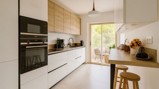 Separate modern kitchen with private balcony