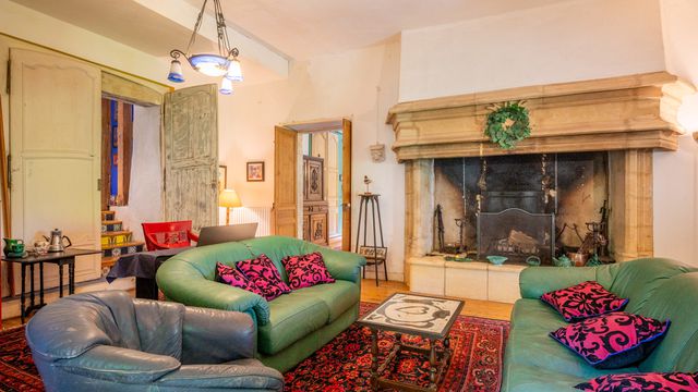 Once the door to the small village lane passed, you will be captivated by the charm of the private, covered passage which leads to the main door of the house, comprising a vast entrance hall, a toilet, a lounge with a fireplace and a large kitchen-dining room.