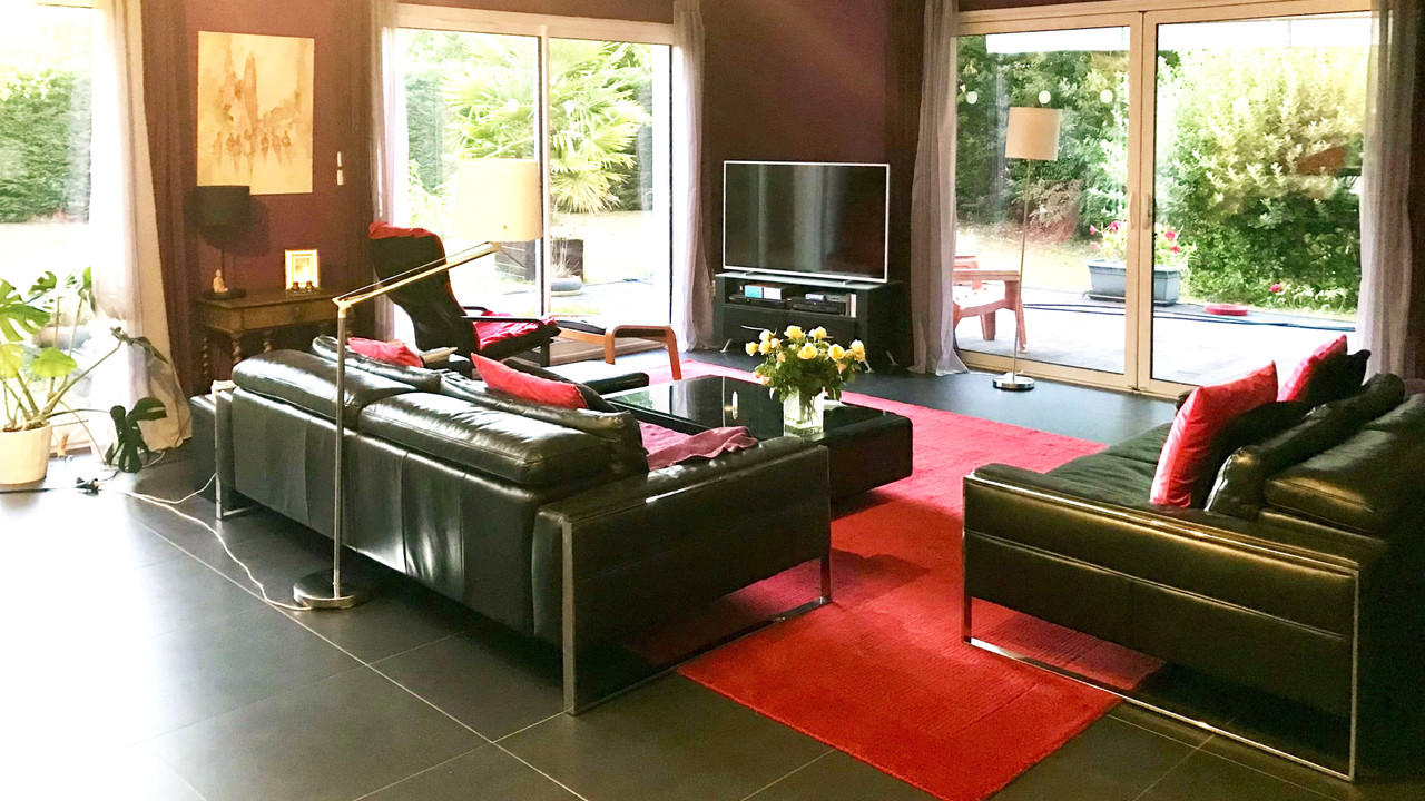 A31007JLC33 - This family home located in Pian Médoc, in a peaceful and green setting, combines comfort, modernity, and environmental respect. The independent entrance leads to a bright living room with triple exposure and a ceiling height of 2.70 meters, opening onto a garden. The equipped and furnished kitchen, with an adjoining pantry, is partially open to the living area. The ground floor also includes a bedroom and a modern bathroom. Upstairs, three bedrooms with closets and a large bathroom with shower and bathtub offer an ideal space for a family. The house is equipped with modern technologies such as underfloor heating, a heat pump, a thermodynamic water heater, and solar panels. A wooded, secluded, and pool-ready plot with a large wooden terrace completes this rare offering in the heart of the nature of Pian Médoc.