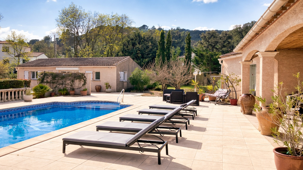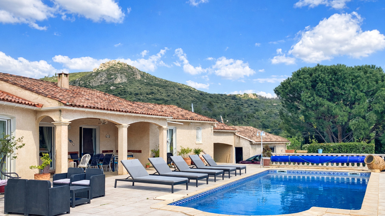 A43228RAB34 - Set in the heart of the charming wine-growing village of Cabrières, just 10 minutes from the lively town of Clermont-l'Hérault with its full range of amenities and direct access to the A75 Motorway towards Montpellier and Béziers, this attractive property offers generous accommodation, excellent outdoor space and great flexibility for family living or rental potential. The property sits on a large enclosed plot of 2424m² with established trees and comprises a main house, a second independent house/gîte, a 10 x 5m salt swimming pool, garage, carport and ample parking. Information about risks to which this property is exposed is available on the Géorisques website : https://www.georisques.gouv.fr