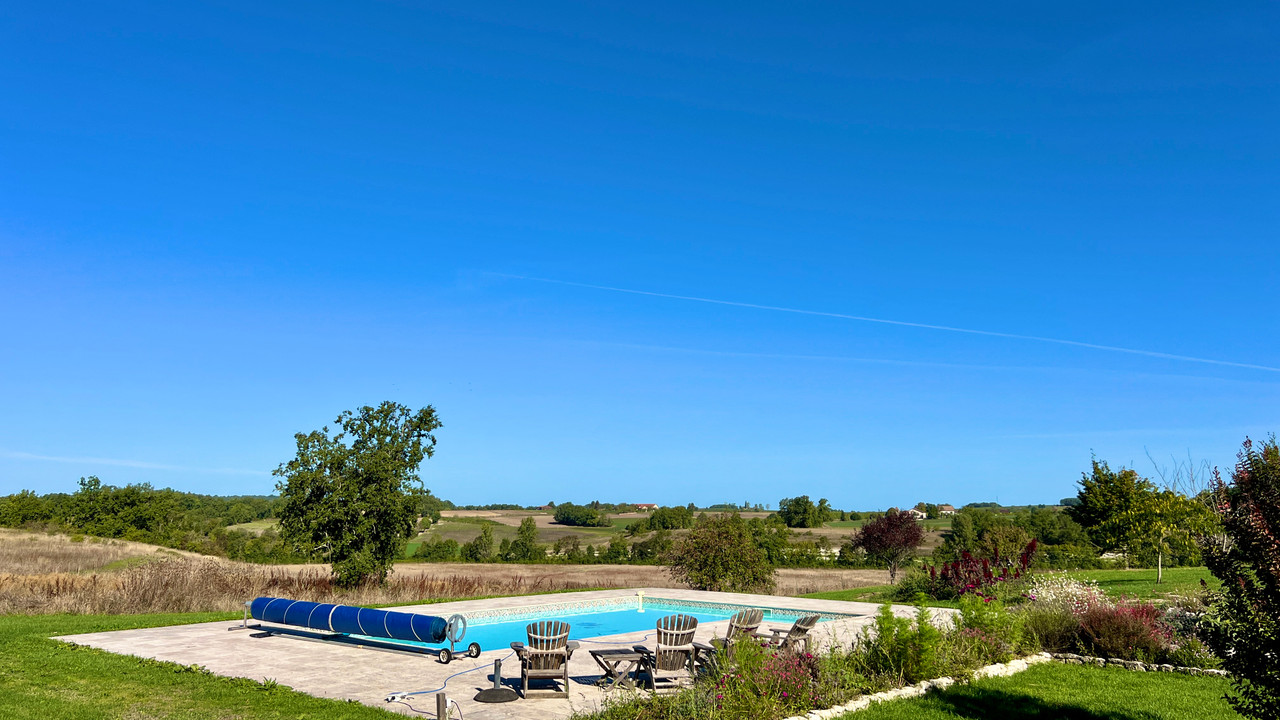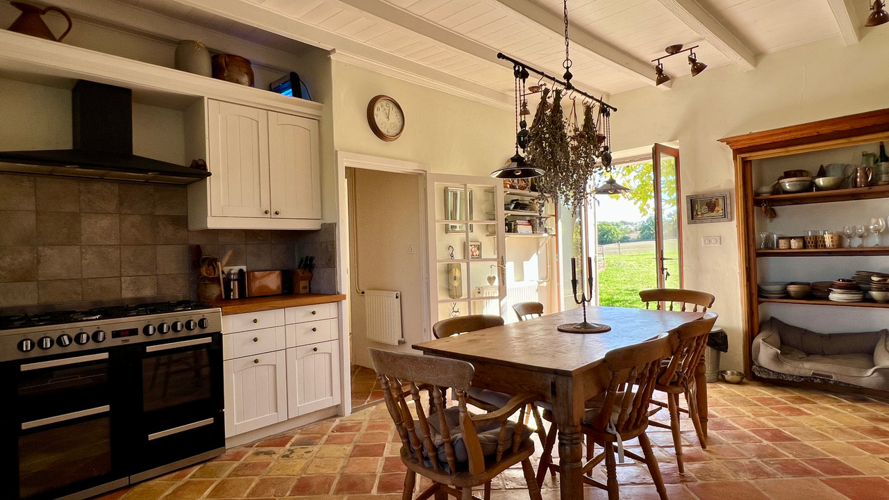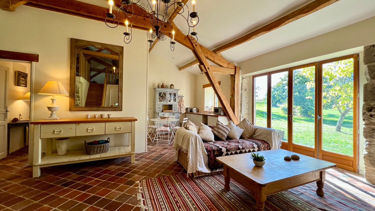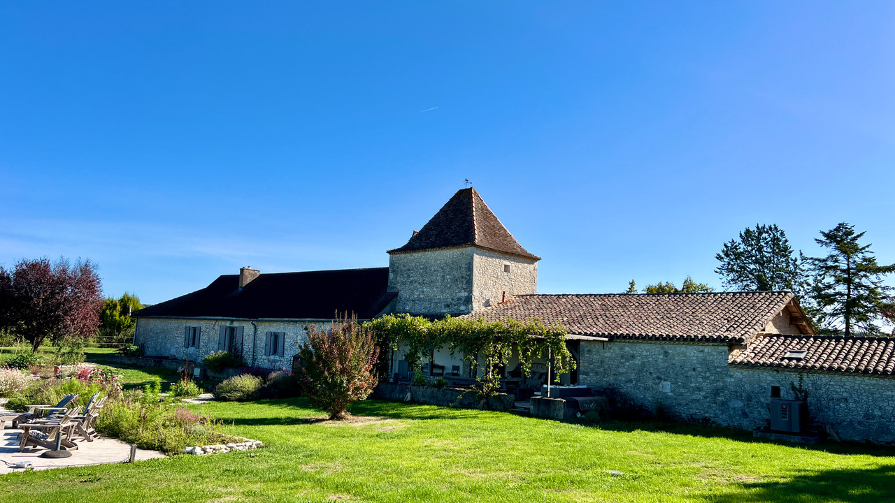 A40019GJP24 - Beautifully restored country house with heated pool and breathtaking panoramic views. This exceptional country estate offers 37.8 hectares (93.5 acres) of meadows, pastures, and woodland—your own private nature reserve in the heart of the Dordogne, perfect for horses with trails on your doorstep. Peacefully located with elevated views yet within easy reach of Eymet, Issigeac, and Bergerac airport, the property has been renovated to the highest standard, retaining its character with exposed stone walls, beams, and terracotta floors. The main farmhouse provides four bedrooms, while the charming guest wing adds three more. Outdoor living is at its finest with a heated swimming pool, sun terraces, and a large stone barn, completing this magnificent ensemble. A rare opportunity to own an estate of timeless beauty and tranquility.