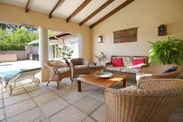 382.220 € (7.495.000 ZAR) ID: 149354Master builder’s home situated at the end of a cul-de-sac with beautiful sea and mountain views. Large living rooms with a great flow to an entertainment deck with a sparkling swimming pool. The house has high standard finishes and is suitable for dual living on 2 floors with separate entrances. Underground parking for 10 cars in which area can be transformed into a studio/workshop/hobby area. Very quiet and peaceful environment.