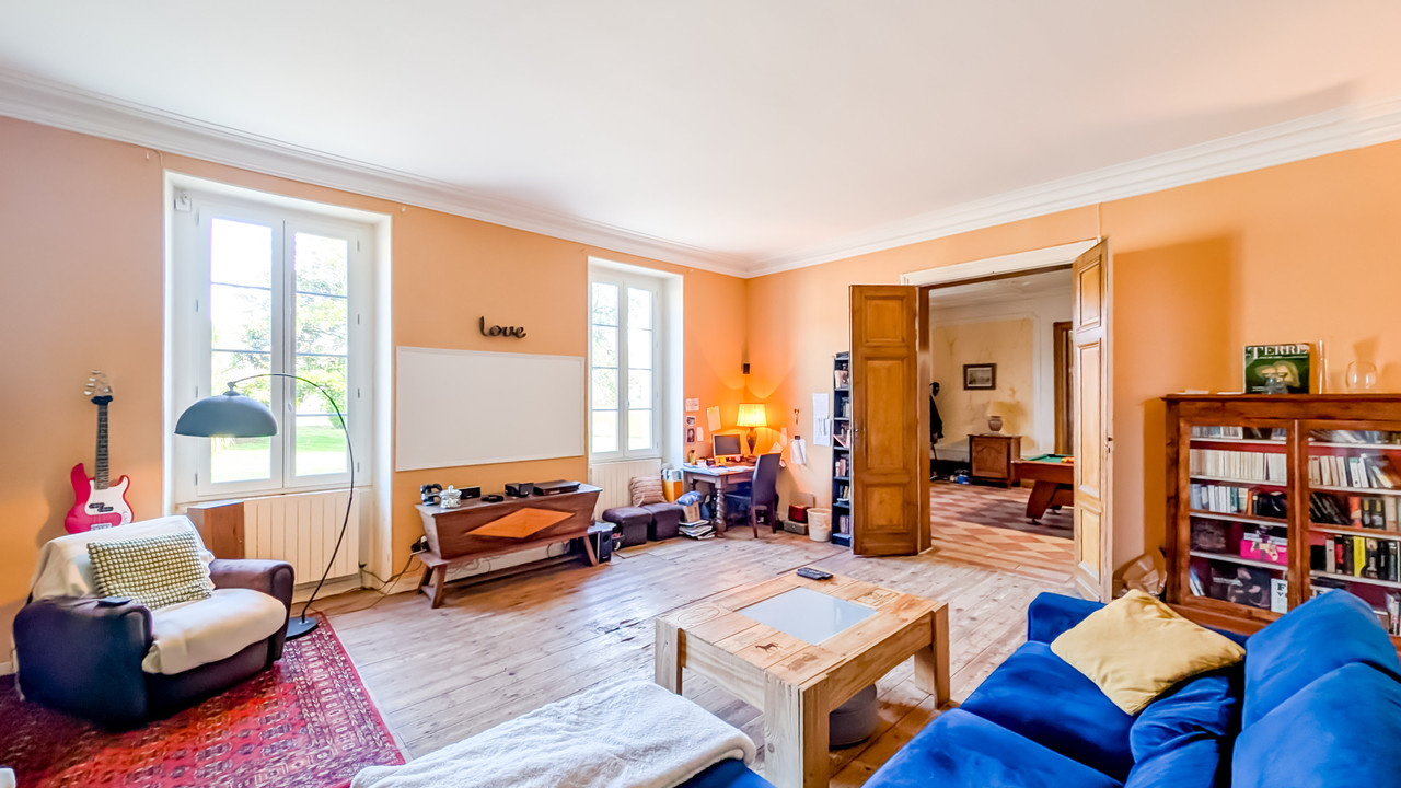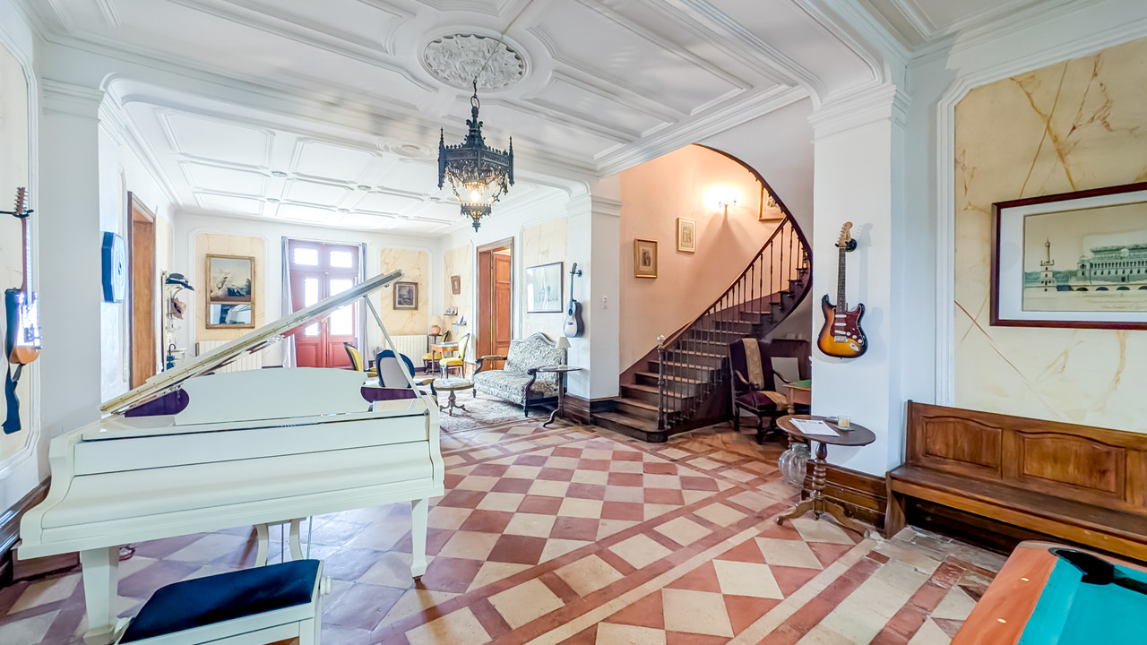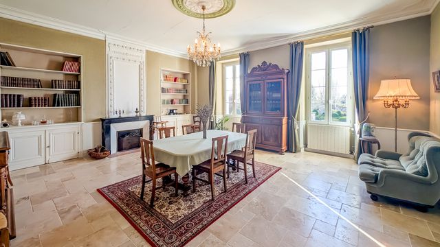 A33710ELM17 - This magnificent mansion, built in 1862, will seduce you with its neoclassical architecture and timeless charm. Its stone facades, high ceilings, large oak windows and triangular porch give it a majestic look and feel. Inside, you will be charmed by the generous volumes, the brightness and the original features: wood parquet floors, marble fireplaces and moldings. The property offers large living spaces such as dining room, living room, sitting room, office on the ground floor and 6 spacious bedrooms and 4 bathrooms upstairs accessible by a large wooden staircase.