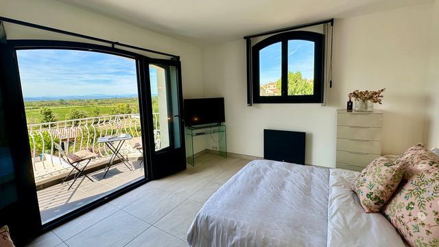 A39052IEG11 - This exceptional canal side Villa renovation is unusually well positioned with direct access to the Canal du Midi. It has been lovingly renovated to exacting standards and is turn-key ready for its new owner. Every room has a great or outstanding view. All rooms are bright and airy, with a beautifully appointed kitchen/dining area leading to a magnificent terrace fully equipped for al fresco life! The pool is the old fashioned type with a deep deep-end, and the Mediterranean garden is beautifully planted with drought resistant plants adapted to the climate.. Upstairs are three bright good sized bedrooms each with en-suite.