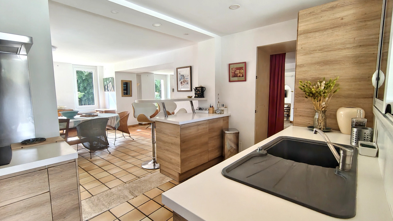 A43953BTU33 - Located just 17 km from Bordeaux, this beautifully renovated stone family home offers around 262 m² of living space set within over 3,500 m² of landscaped and enclosed gardens. The property features generous reception areas, two kitchens, seven bedrooms, a study/office and three bathrooms, providing an ideal layout for a large family or a hospitality project. Outside, an elegant 11 x 5 meter swimming pool with exotic wood decking is complemented by two shaded terraces, a play area and a vegetable garden. Within walking distance of the charming village of Lignan-de-Bordeaux and its amenities, the property also offers convenient access to transport links into Bordeaux. Spacious, versatile and surrounded by nature, it presents an excellent lifestyle opportunity.